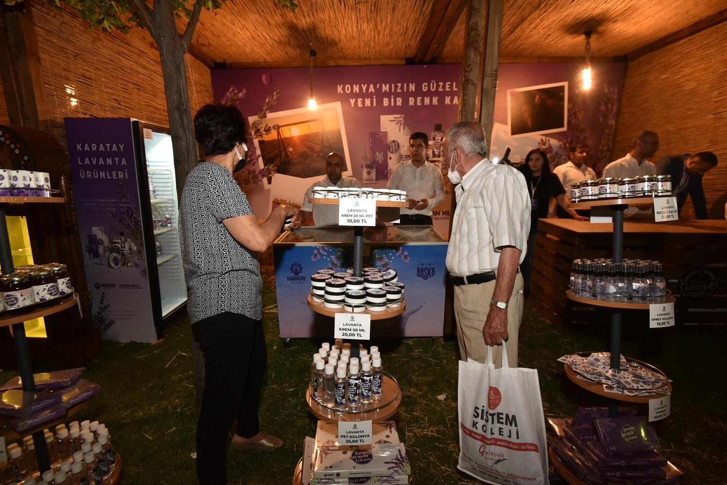 4 Eylül’e kadar sürecek olan Konya GastroFest’te Karatay Belediyesi, kurduğu iki stantta Karatay’ın eşsiz lezzetlerinin yanı sıra Karatay Lavanta Bahçesi’nin lavantalarından elde edilen ürünlerin tanıtımını yapıyor.