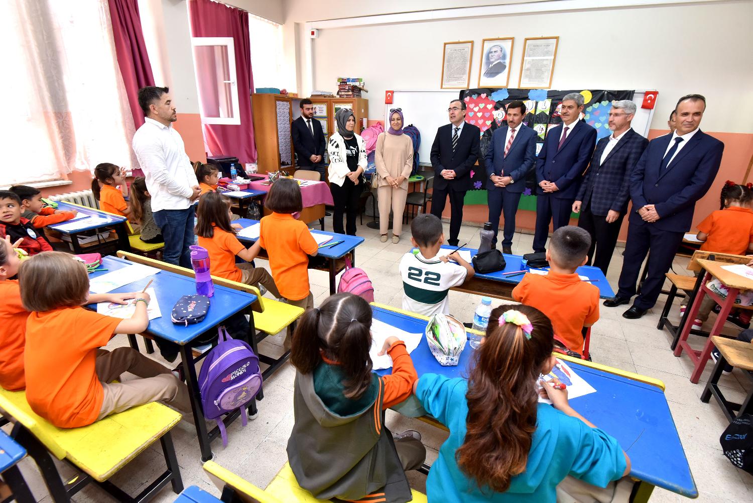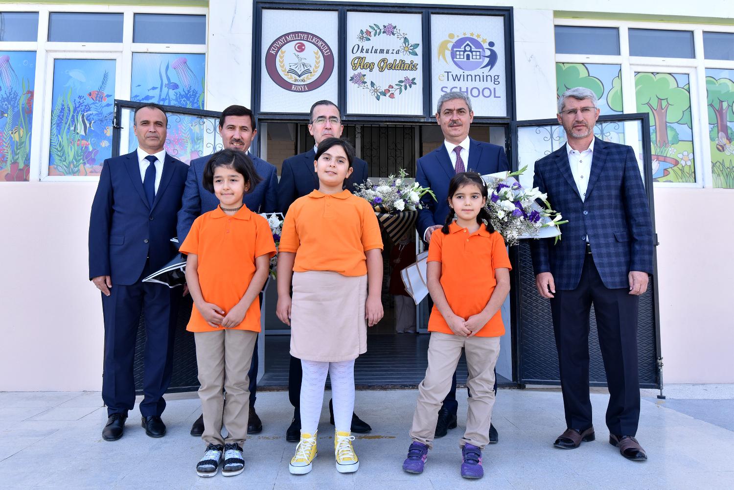 Karatay Belediye Başkanı Hasan Kılca, Karatay Kaymakamı Yavuz Güner ve Karatay İlçe Milli Eğitim Müdürü Sami Sağdıç da, hem 2022-2023 Eğitim-Öğretim Yılı’nın ilk ders gününde öğrencilerin heyecanına ortak oldu hem de içlerinde 14 adet kırtasiye malzemesi bulunan okul çantası ve beslenme çantasından oluşan desteğini Karatay Kuvayı Milliye İlköğretim Okulu’nda öğrencilere dağıttı.