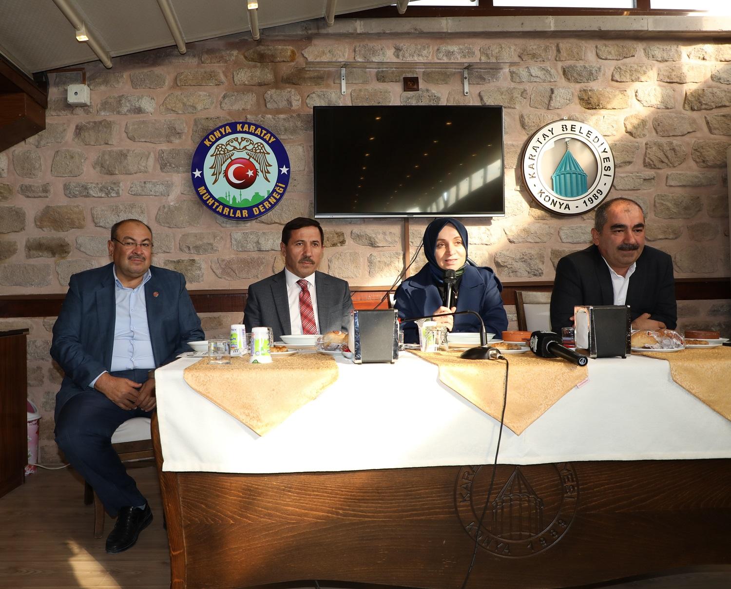 Adalet ve Kalkınma Partisi (AK Parti) Genel Başkan Yardımcısı ve Konya Milletvekili Leyla Şahin Usta, Karatay Belediye Başkanı Hasan Kılca ile AK Parti Karatay İlçe Başkanı Mehmet Genç, Karatay Muhtarlar Derneği’ni ziyaret etti. Söz konusu ziyarette hükümetin yanı sıra yerel yönetimlerin Karatay ile ilgili hizmetler, yeni projeler ve muhtarların talepleri istişare edildi.
