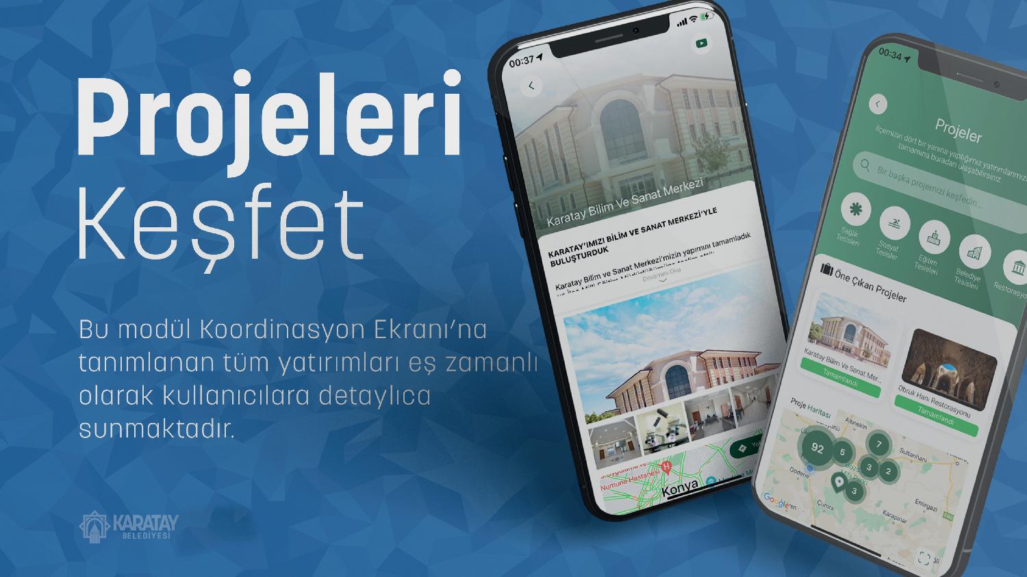Üzerinde büyük bir titizlikle çalışılan ve tamamen Karatay Belediyesi personeli tarafından tasarlanan yeni mobil uygulama; kullanıcı dostu arayüzü ve interaktif tasarımı sayesinde vatandaşlardan da tam not aldı.