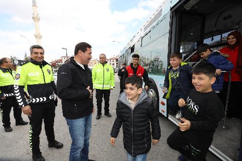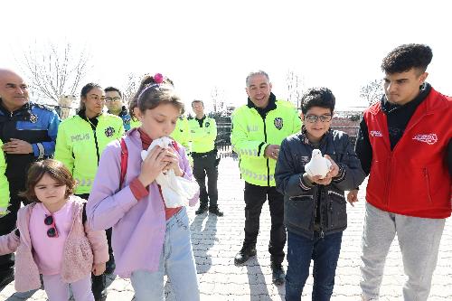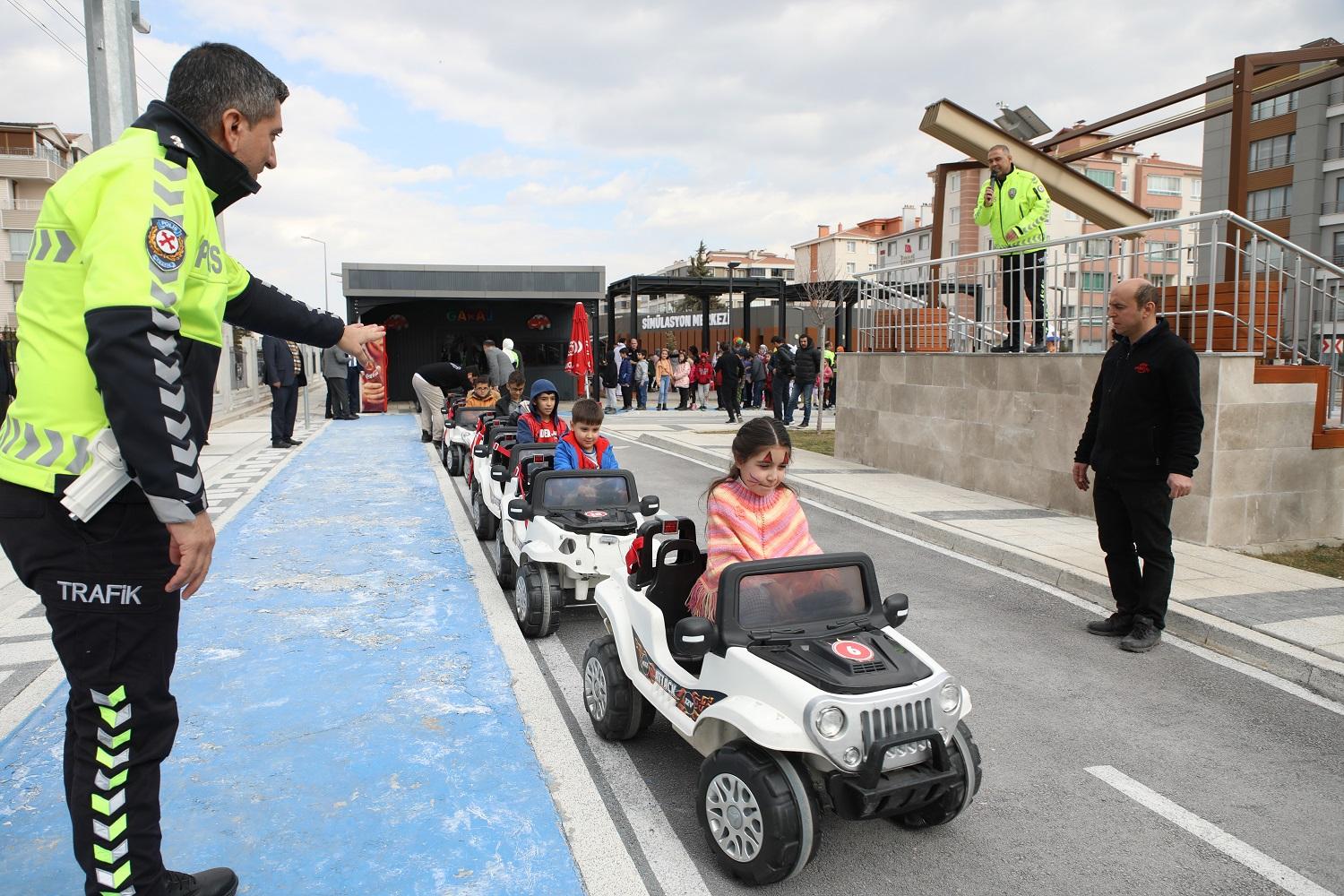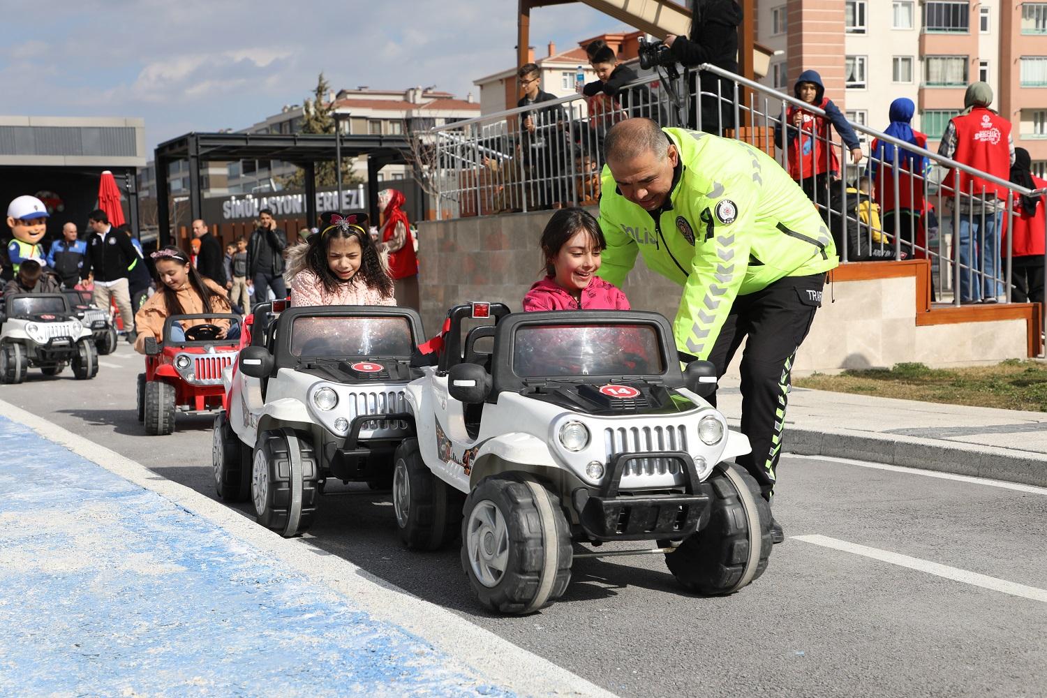 Daha sonra Trafik Eğitim Parkı’nda pedallı araçlara binen çocuklar, hem yaya hem de sürücü olarak trafik kurallarını öğrenme imkânı buldular. Meddah Osman Bozdemir de Karatay Trafik Eğitim Parkı’nda çocuklara özel eğlenceli oyunlar ve gösteriler yaparak çocukların eğlenceli bir gün geçirmesine katkı sundu.