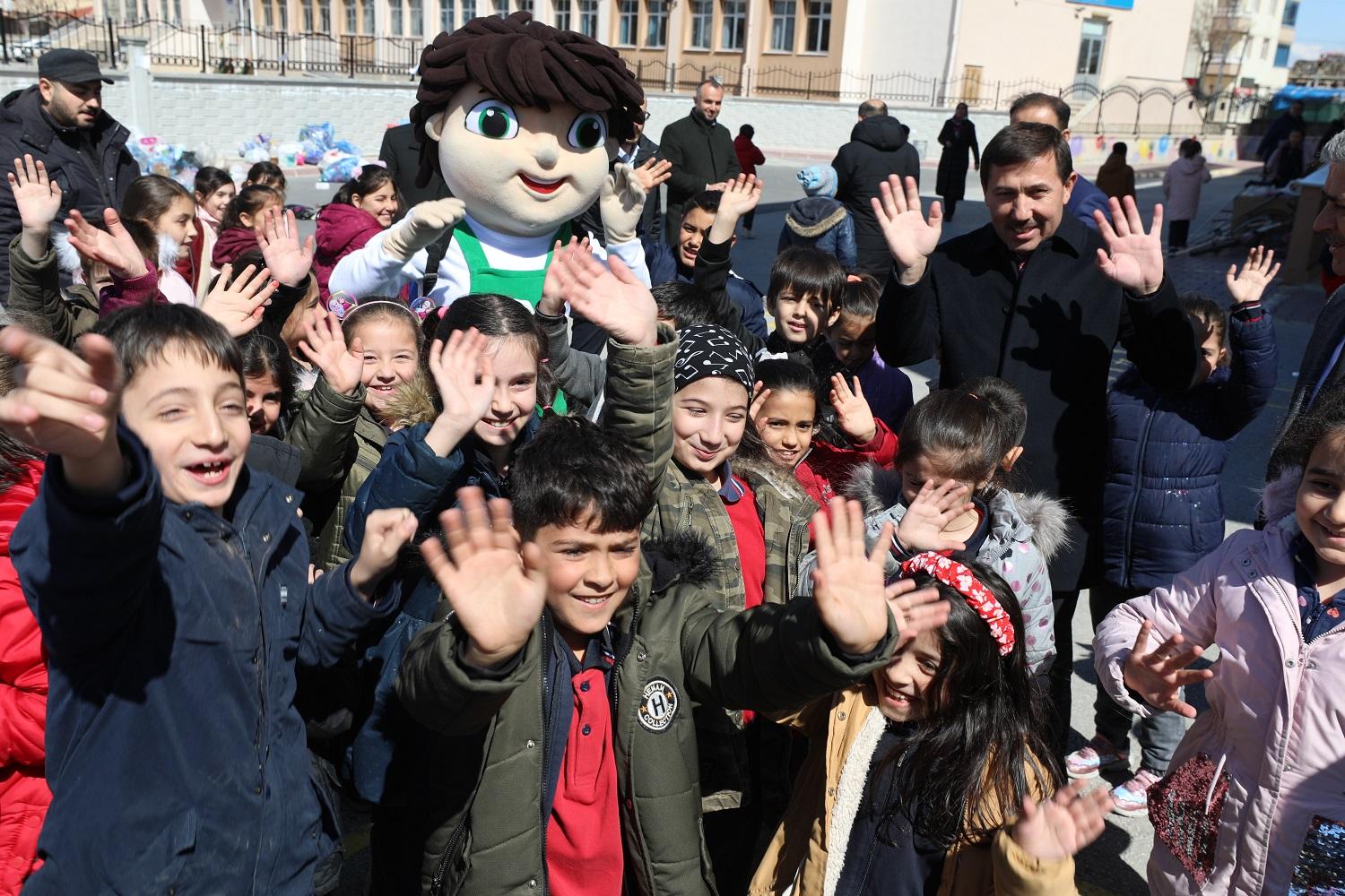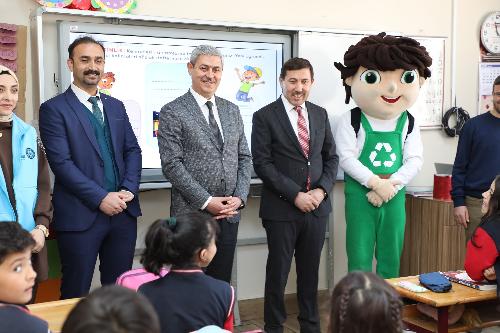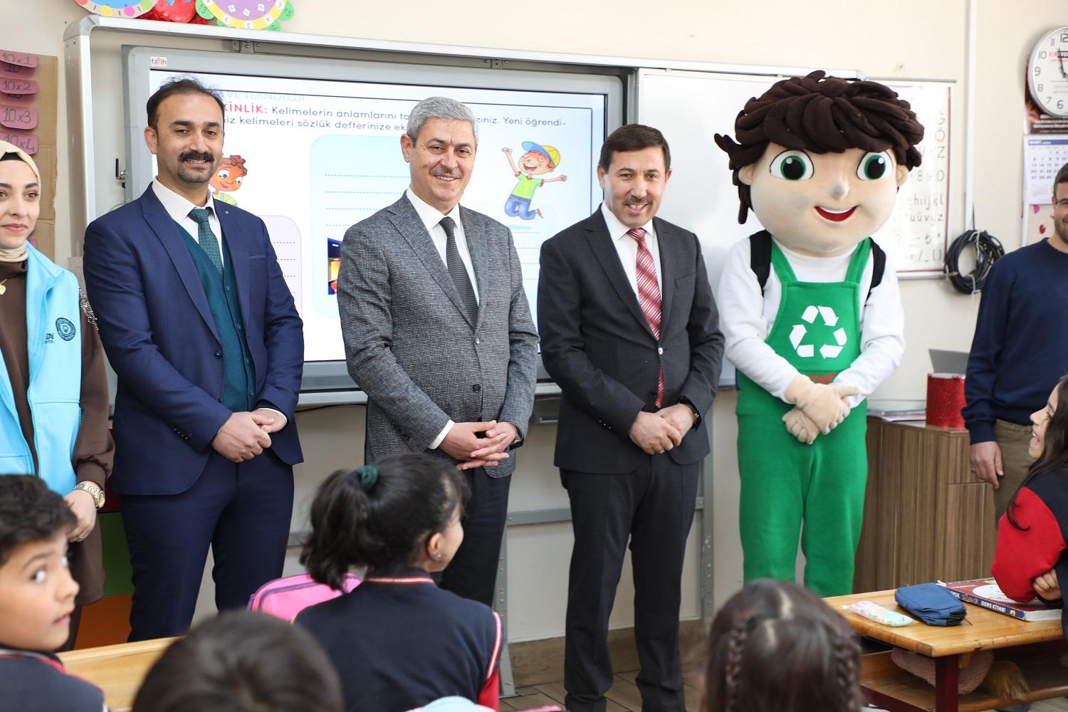 Karatay Belediye Başkanı Hasan Kılca, Türkiye’de bir ilk olan proje kapsamında hazırlanan Sıfır Atık Eğitim Setleri’nin dağıtımı için Hediye Mehmet Ali Uzman İlköğretim Okulu’nun 3’ncü sınıflarını ziyaret ederek öğrencilerle bir araya geldi. Başkan Hasan Kılca, İlçe Milli Eğitim Müdürü Sami Sağdıç ile Karatay Belediyesi’nin Sıfır Atık çalışmalarındaki maskotu olan “Karacan”la birlikte setleri öğrencilere dağıttı.
