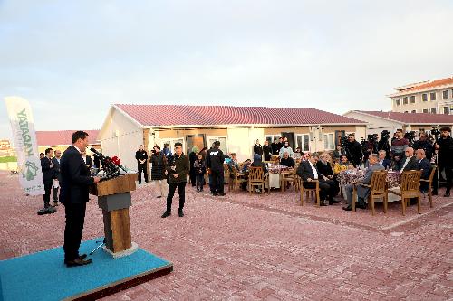 Halil Ürün; “Mazlumlara ve mağdurlara sahip çıkmak bizim geleneğimizdir, örfümüzdür, medeniyetimizdir. Biz ‘İrfan Medeniyetinin’ mensuplarıyız. Bu medeniyet dün vardı, bugün de var ve onu yok etmeye çalışanlara inat yarın da var olmaya devam edecektir. Çünkü bu medeniyet olmadan komşuluk olmaz, bu medeniyet olmadan sahiplenme olmaz, bu medeniyet olmadan sevinçleri paylaşma olmaz. Saydığım bu hususların yerine gelmesi için bu kadim medeniyetin devam etmesi lazım. Bu güzel irfan medeniyetini unutmayın, sahip çıkın bununla birlikte varlığınız devam etsin. 54 adet dairenin inşa edilmesi dolayısıyla Karatay Belediye Başkanımız Hasan Kılca’ya ve çalışma arkadaşlarına, katkısı olan iş adamlarımıza teşekkür ediyorum” dedi.