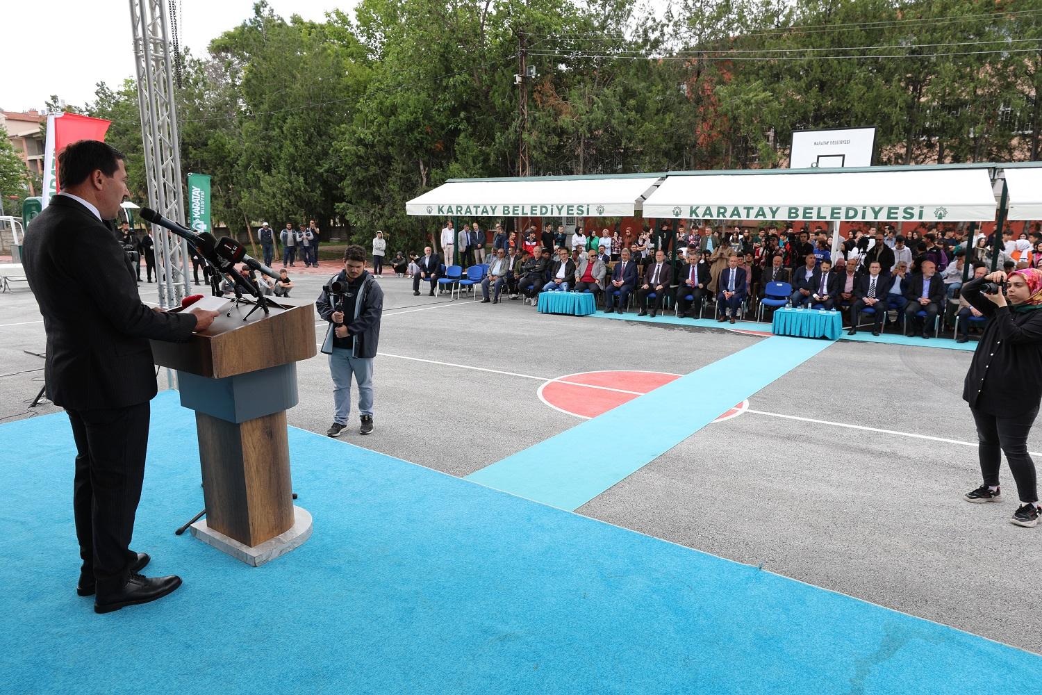 Pekyatırmacı, Konya belediyeleri olarak toplumun her kesimine hitap edecek işler yaptıklarını söyleyerek konuşmasını şöyle sürdürdü; “Belediyeler olarak sadece alt yapı hizmetleri değil eğitimden sağlığa, spora kültüre varıncaya kadar her alanda üzerimize düşen vazifeyi yerine getiriyoruz. Bu güzel eserin meydana gelmesinde emeği geçen başta Karatay Belediye Başkanımız olmak üzere tüm çalışma ekibine, milli eğitim müdürümüze, gençlik spor il müdürümüze özellikle teşekkür ediyorum. Gençlerimiz için ne yapsak azdır. Onların her alanda kendilerini geliştirebilmeleri ve ifade edebilmeleri bizim için önemli. Onun için inşallah bu tesis gençlerimiz spor alanında kendilerini geliştirmeleri yolunda çok önemli bir hizmeti yerine getirecek. Gençlerimiz bu güzel tesis de çok güzel vakit geçirecekler. Türkiye Yüzyılı’nı biz gençlerimizle birlikte inşa edeceğiz. Değerli başkanımıza Kartay’ımıza yaptığı hizmetlerden dolayı teşekkür ediyorum.”