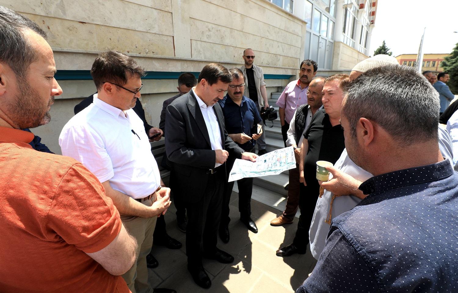 MESVA Camii’nde kılınan Cuma Namazı’nın ardından bölgede faaliyet gösteren esnaf ve vatandaşlarla bir araya gelen Başkan Hasan Kılca, gelen istek ve önerileri de dinledi.