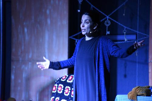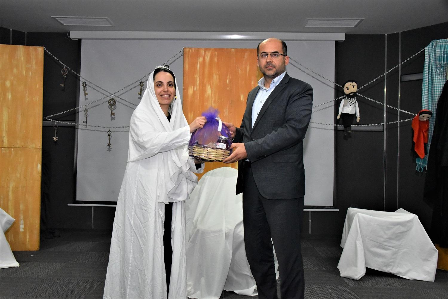Filistinli Meryem'in hayatını sahneye taşıdığı ve büyük ilgi gören “Filistin Hakkında Konuşmalıyız” adlı tek kişilik oyunun sonunda Karatay Belediye Başkan Yardımcısı Osman Ciğer, Oyuncu Nurdan Albamya’ya teşekkür etti.