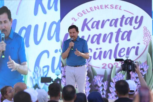 “2. Karatay Lavanta Günleri”, Karatay Lavanta Bahçeleri ile Karatay Mevlana Gül Bahçesi projeleri hakkında değerlendirmelerde de bulunan Karatay Belediye Başkanı Hasan Kılca; “Karatay Lavanta Günleri’nin bu yıl ikincisini yapıyoruz. Hemşehrilerimiz de büyük ilgi gösteriyorlar. Lavanta ile Mevlana Gül Bahçemiz toplamda 1 milyon metrekarelik alanda ilçemize ve şehrimize hizmet veriyor. Hedefimiz, Konyamız ve Karatayımızda kişi başına düşen yeşil alan miktarını artırmaktı. Bu iki bahçemizle çok önemli yeşil alan çalışması yaparak bu oranı kişi başına 2 metrekareye yükselttik ve bu anlamda Avrupa standartlarının da üstüne çıkmış olduk. Lavanta Bahçemize gelenler buradan ayrılmak istemiyor. Uçsuz bucaksız bu bahçemizi ziyaret edenler gönüllerince burada vakit geçiriyor. Tematik park olarak hemşehrilerimize veren buraya sadece Konya’dan değil, Türkiye’nin her yerinden hatta yurtdışından da güzel bir ilgi var. İlçemize farklı bir hava kattığını ve Konyamızın turizmini daha da canlandırdığını düşünüyorum” dedi.