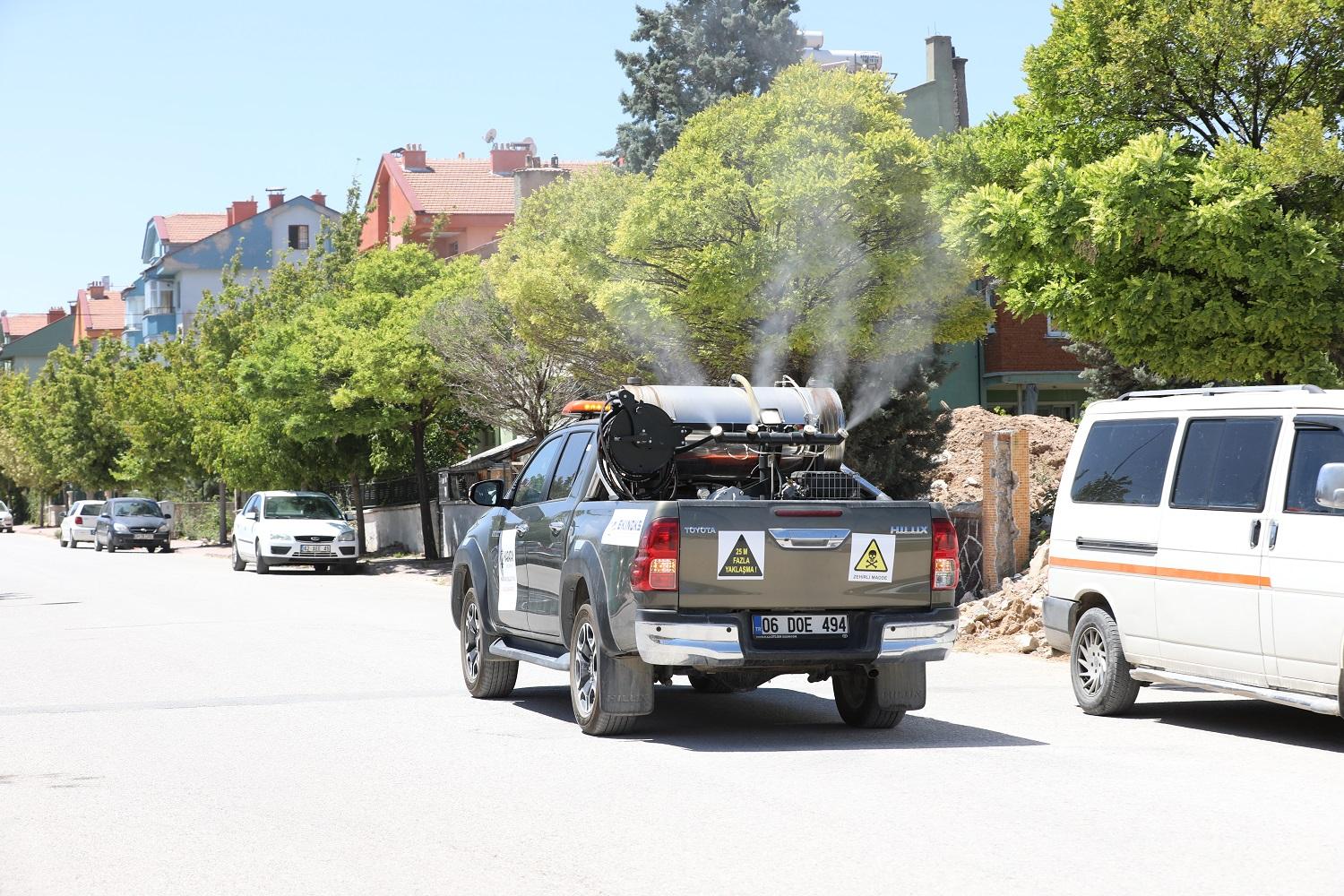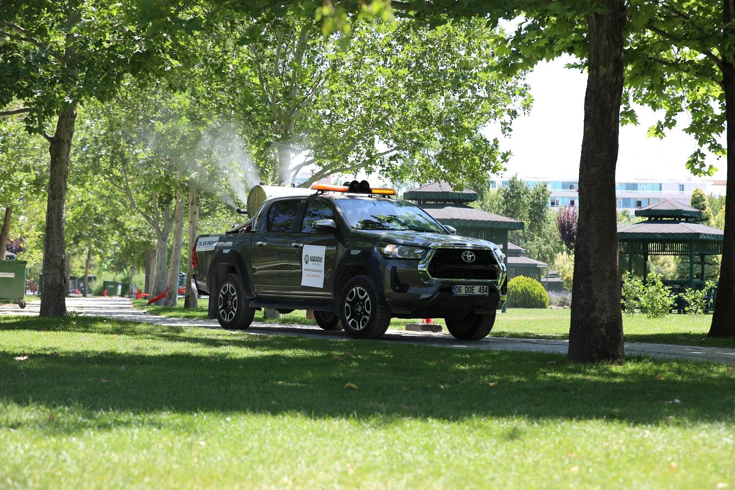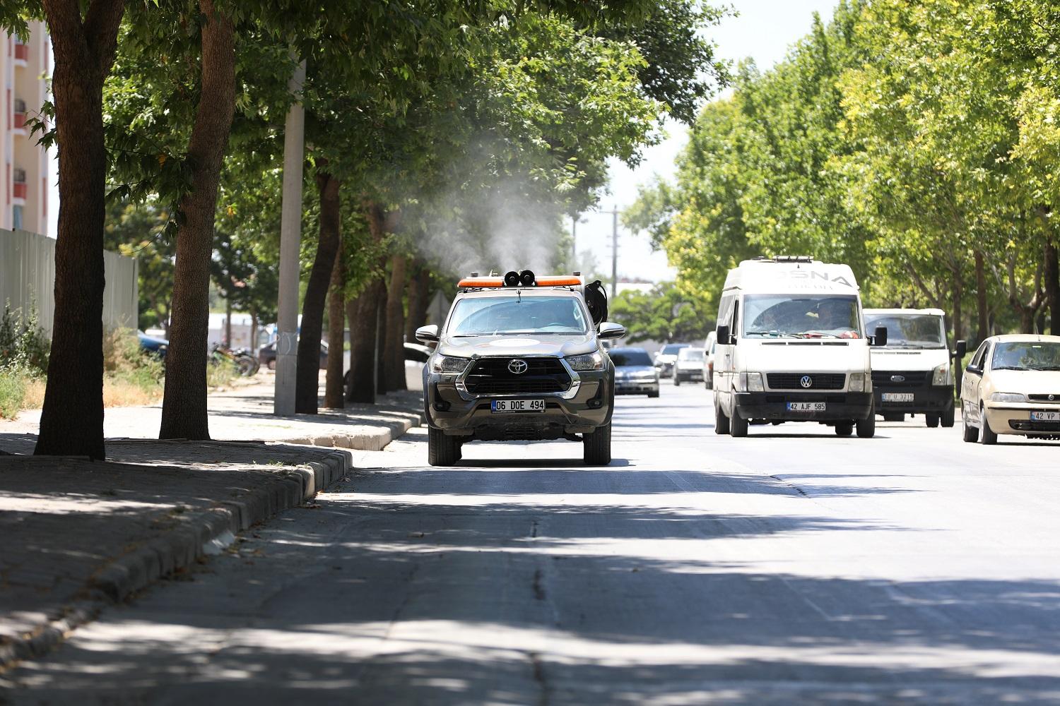 Karatay Belediyesi, hava sıcaklığının son günlerde artmasıyla birlikte çoğalan haşerelerin oluşturabileceği rahatsızlıkları en aza indirmek ve halk sağlığını korumak amacıyla etkili ilaçlama çalışması yürütüyor.