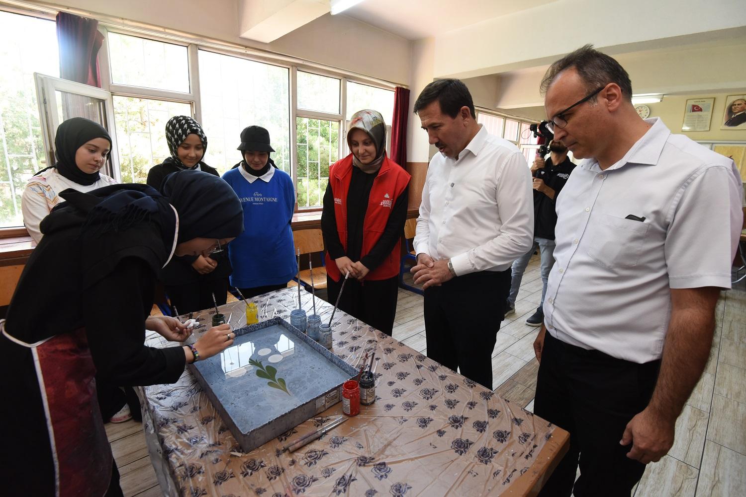 Karatay Belediyesi Kent Konseyi Gençlik Meclisi’nin, Karataylı çocuklar ve gençlerin Yaz tatillerini daha verimli ve keyifli geçirebilmeleri amacıyla düzenlediği “Karatay Gençlik Meclisi Yaz Okulu” eğitimleri devam ediyor. Karatay Belediye Başkanı Hasan Kılca da projenin uygulandığı okulları ziyaret ederek, eğitimlere katılan çocuklar ve gençlerle buluştu. Ülkemizin geleceği olan çocukları ve gençleri çok sevdiklerine vurgu yapan Başkan Hasan Kılca; “Gençlerimizin geleceğe en iyi hazırlanması ve adına üzerimize düşeni yapmaya devam ediyoruz” dedi.