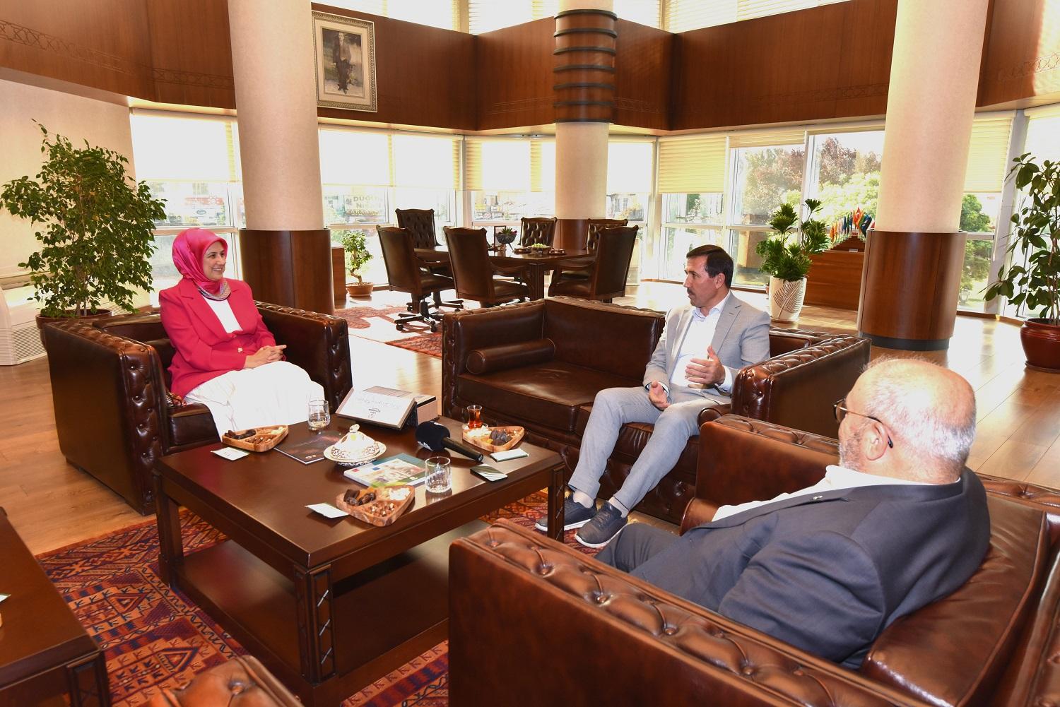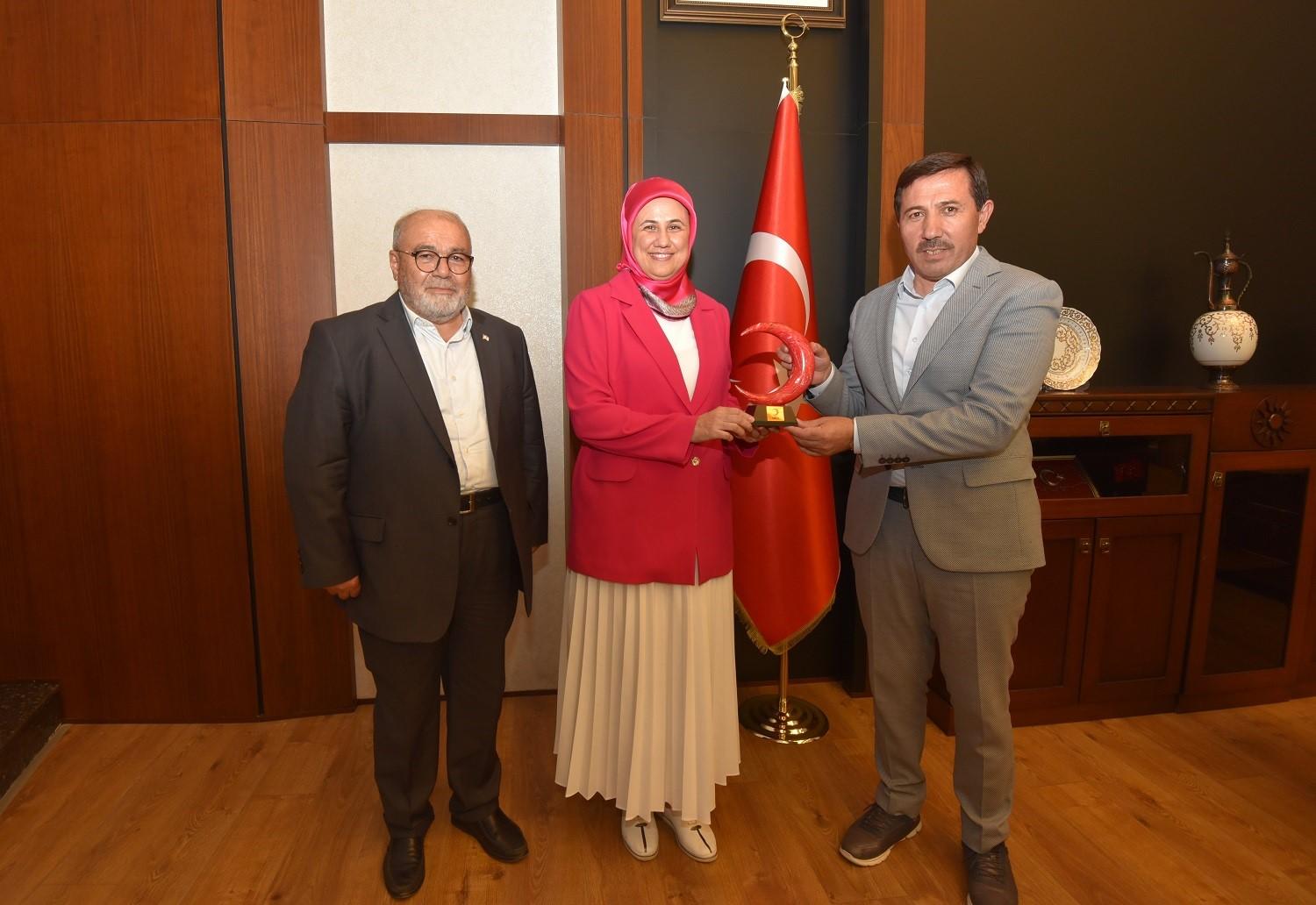 Türk Kızılay Genel Başkanı Prof. Dr. Fatma Meriç Yılmaz ve Türk Kızılay Konya Şubesi Başkanı Hüseyin Üzülmez, Karatay Belediye Başkanı Hasan Kılca’yı ziyaret etti.