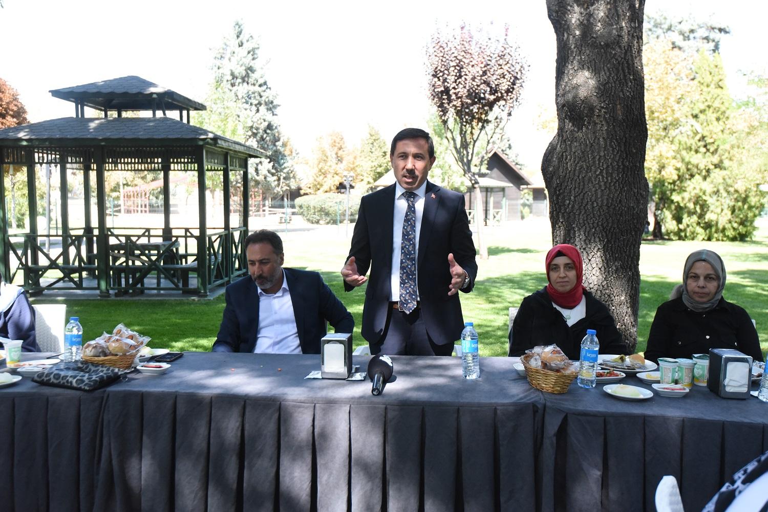 Mustafa Hakan Özer, “Belediye başkanlarımız şehrimizde güzel hizmetler yapıyor. Karatay Belediye Başkanımız Hasan Kılca da Konya’da çok güzel işler yapan başkanlarımızdan bir tanesi. Başkanımızın şehrimize olan hizmetleri bizlerin gurur kaynağı oluyor. İşte bu üretilen hizmetlerin tamamında her birinizin çok büyük katkısı var. Kadınlar bulunduğu her yere beraberinde kaliteyi de getiriyor. Belediyelerimizin hizmetlerinde vermiş olduğunuz katkıdan dolayı her birinize teşekkür ediyorum. Başkanımıza da böylesine güzel bir birlikteliği sağladığı için ayrıca teşekkür ediyorum” dedi.