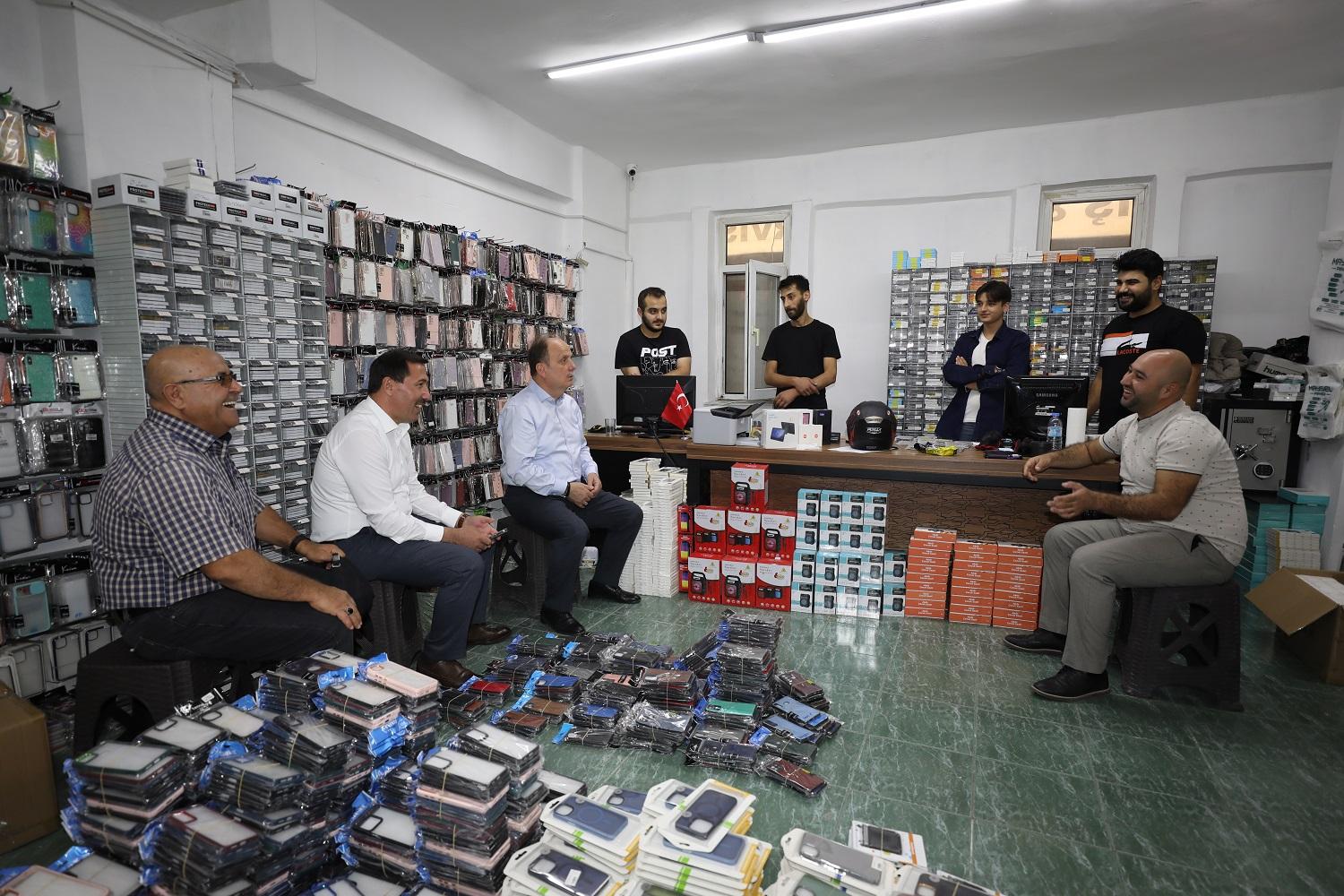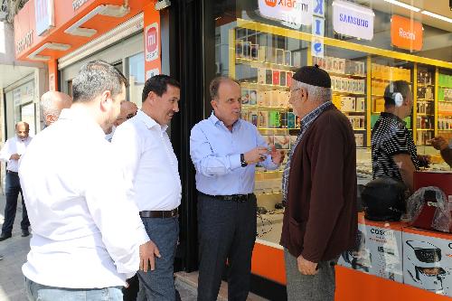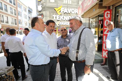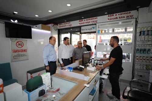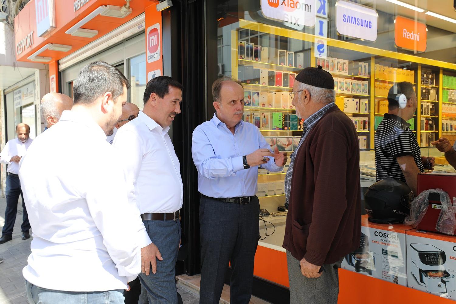 Esnafın talep ve önerilerini dinleyen Mehmet Baykan ile Hasan Kılca hizmetleri hakkında esnafları bilgilendirirken vatandaşlarla da sohbet ederek onların taleplerini dinledi.