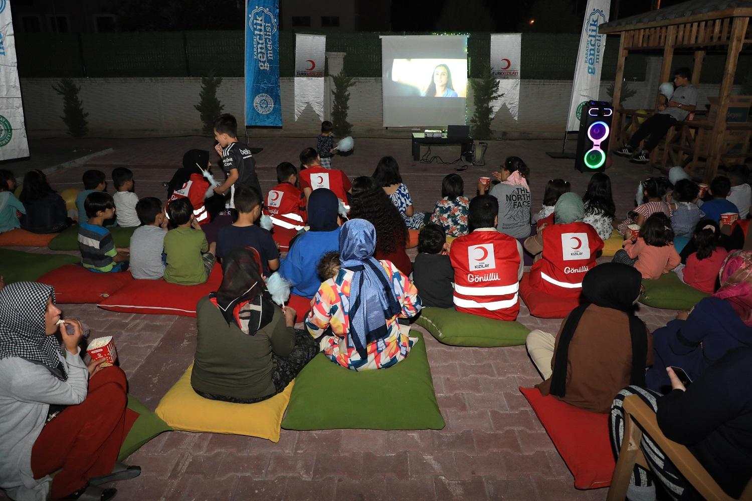 Karatay Kent Konseyi Gençlik Meclisi ve Kızılay Karatay Şubesi tarafından, Karatay Konukevi’nde misafir edilen çocuklar için açık havada film gösterimi yapıldı, çeşitli etkinlikler düzenlendi.