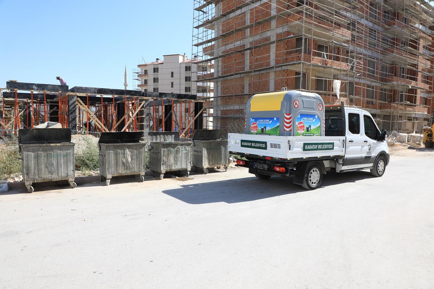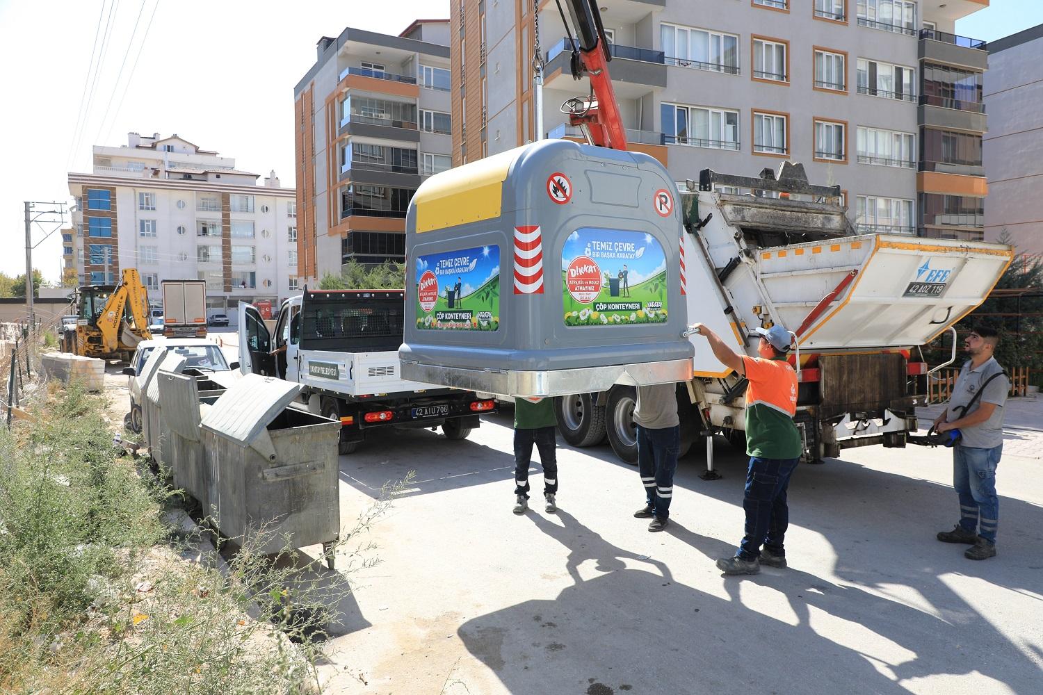 Karatay Belediyesi, ilçe merkezinde bulunan çöp konteynerlerini yeni sistem çöp konteynerleriyle değiştirme çalışması çerçevesinde, 450 adet eski tip çöp konteynerini toplayarak yerine 200 adet kancalı yarı yeraltı ve kancalı yer üstü çöp konteynerinin daha kurulumunu gerçekleştirdi.