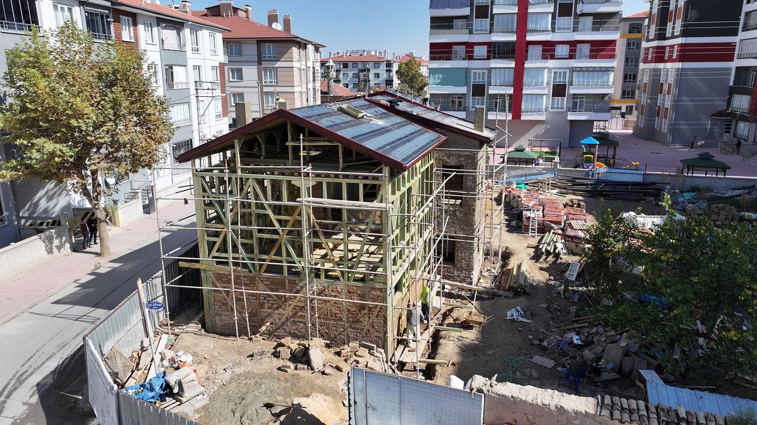 Bu kapsamda Karatay Belediyesi ekipleri, Nakipoğlu Mahallesi Hacı Hasan Caddesi üzerinde bulunan ve yaklaşık 125 yıllık geçmişe sahip Konya’nın iki eski evini restore ediyor.