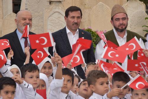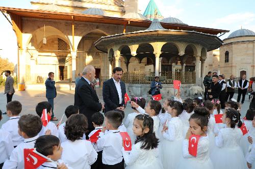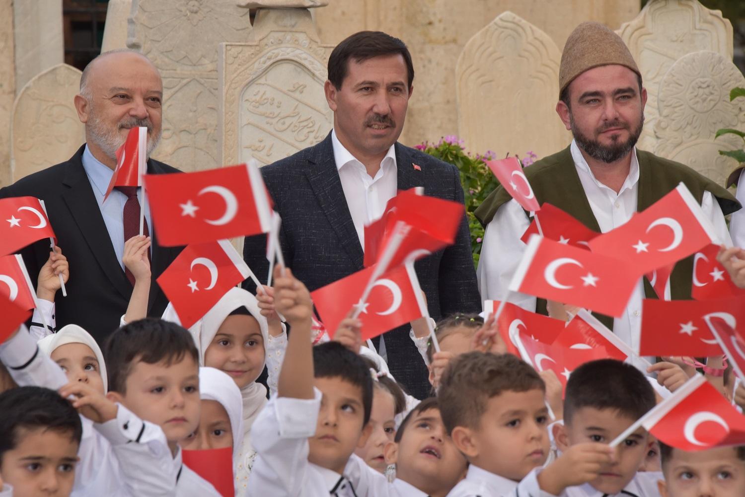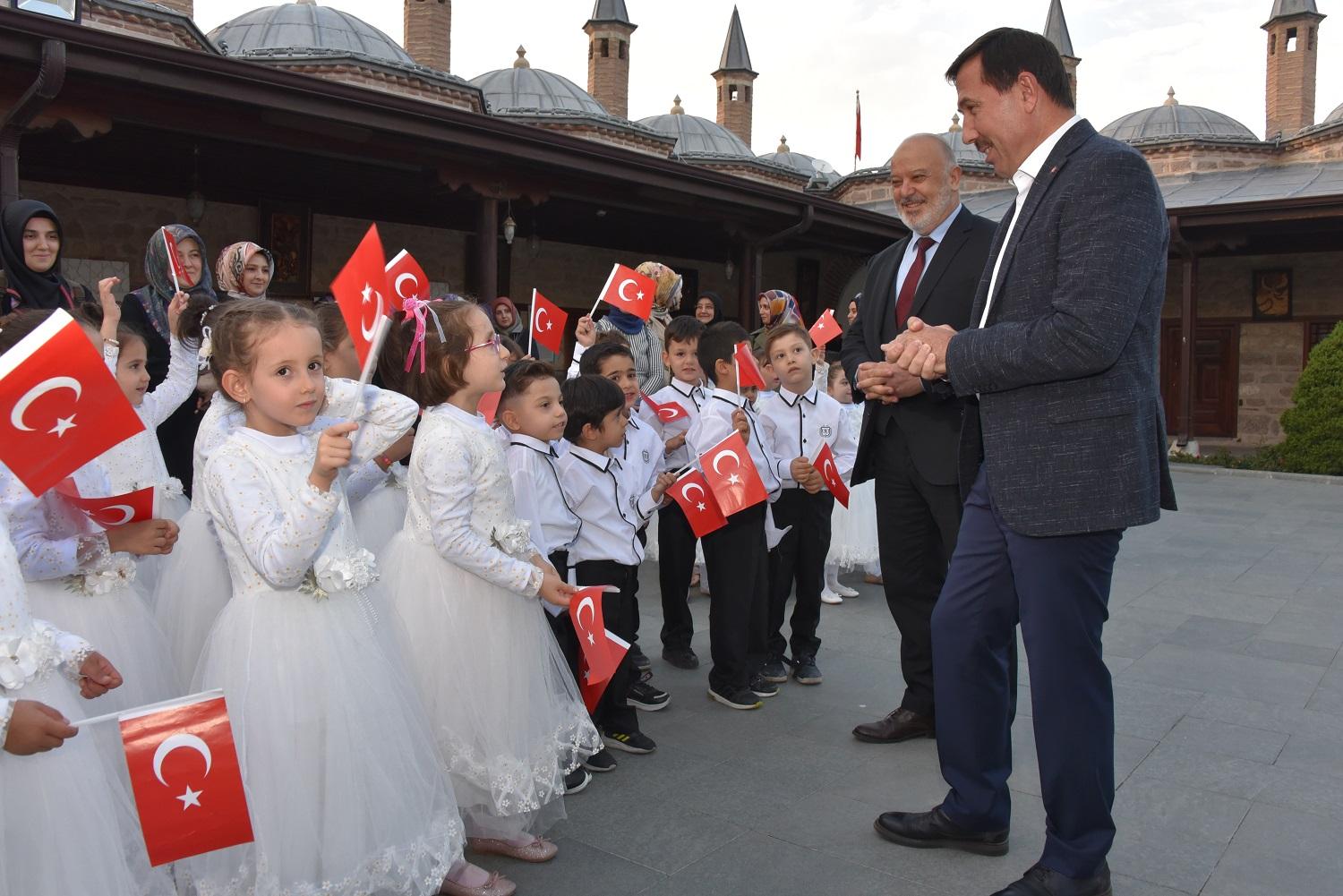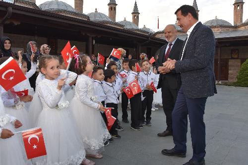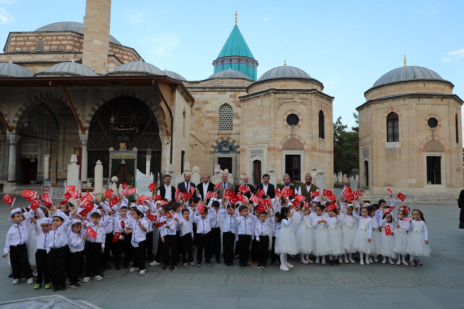 Bed-i Besmele programı, Karatay’daki 6 Kur’an kursunda eğitim gören 120 öğrencinin Mevlana Müzesi’ni ziyareti ve Mevlana Gül Bahçesi’ndeki dua eşliğindeki yürüyüşüyle başladı. Karatay Belediye Başkanı Hasan Kılca ve Karatay İlçe Müftüsü Musa İmamoğlu da Mevlana Müzesi Gül Bahçesi’ndeki programa katıldı, miniklerin heyecanına ortak oldu.