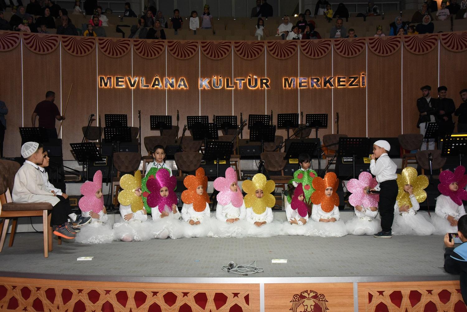 Bu anlamlı ve bir o kadar da özel programın finali ise Mevlana Kültür Merkezi’nde gerçekleştirildi. 4-6 Yaş Kur'an Kursu öğrencileri, kurs eğitmenleri ve Karatay Kent Konseyi Gençlik Meclisi üyeleri tarafından hazırlanan program kapsamında minikler, çocuk ilahileri seslendirdi, çeşitli tiyatro ve sema gösterisi gerçekleştirdiler.