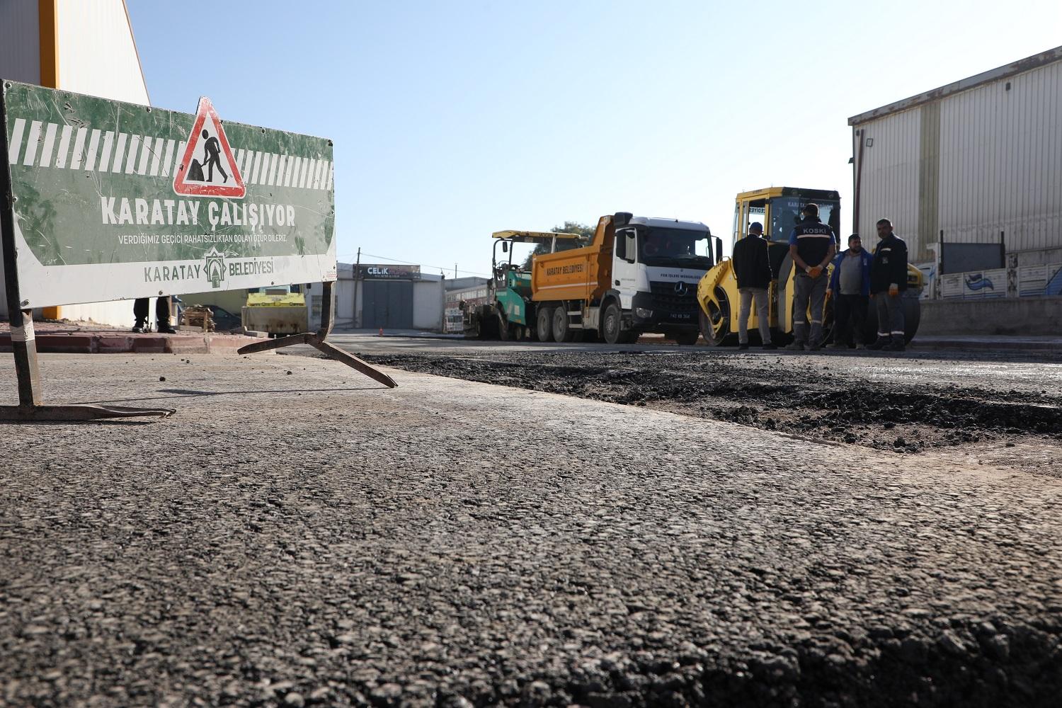 Karatay Belediyesi Fen İşleri Müdürlüğü ekipleri, yol yapım, asfaltlama, bakım ve onarım çalışmalarını sürdürüyor. Ekipler bu kapsamda Demirciler Sanayi Sitesinde sıcak asfalt serimi gerçekleştiriyor. Yapılan asfaltlama çalışmasının Sanayi Sitesi için önemli olduğunu söyleyen Karatay Belediye Başkanı Hasan Kılca; vatandaşların rahatı ve konforu için çalışmaların süreceğini belirtti.