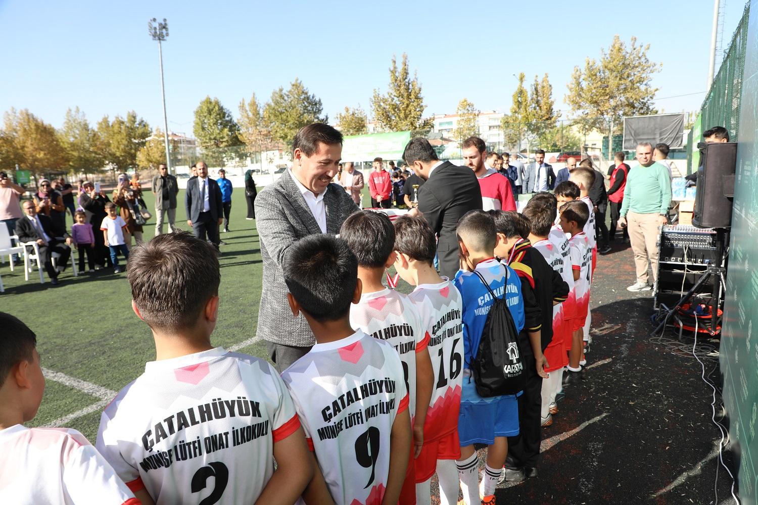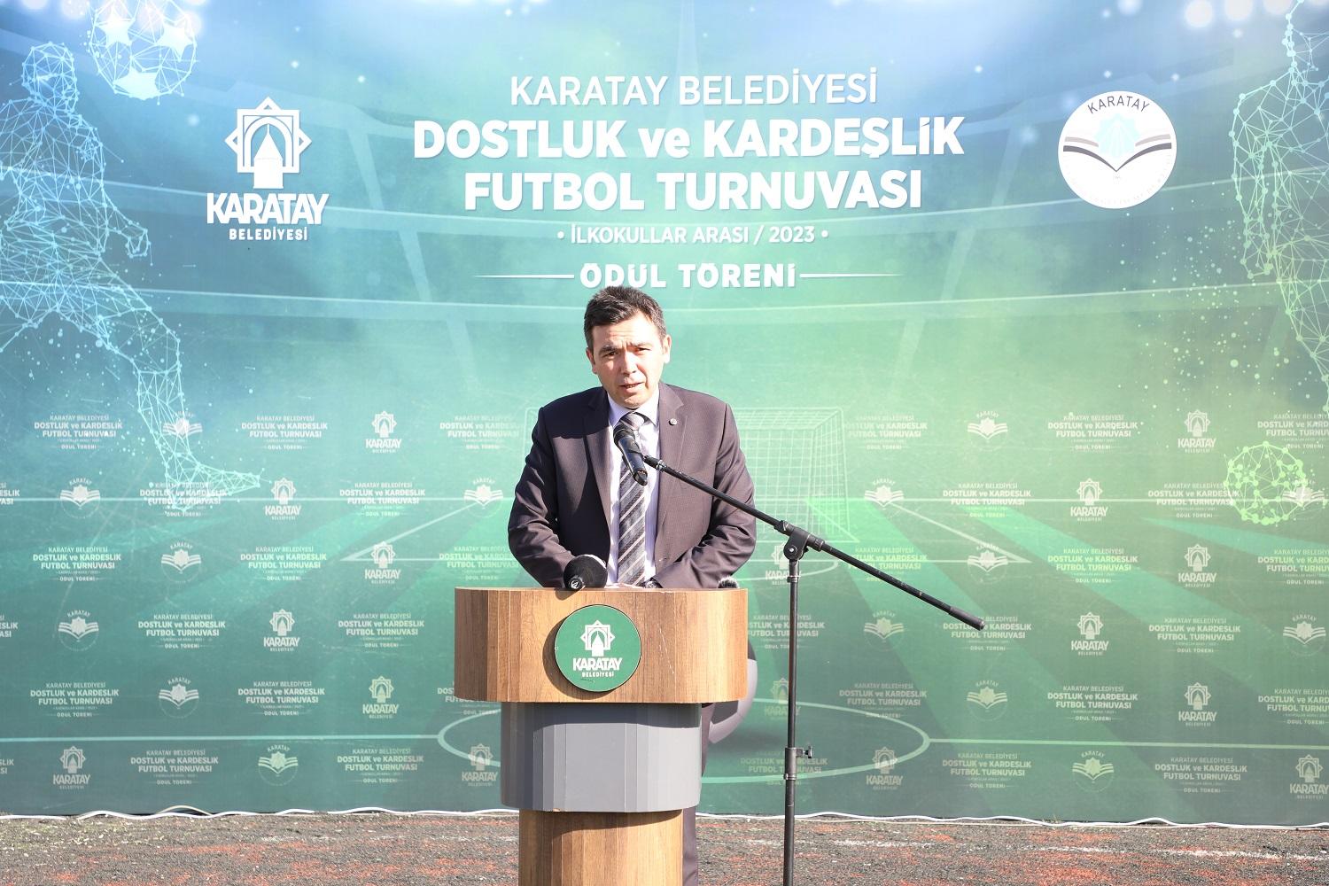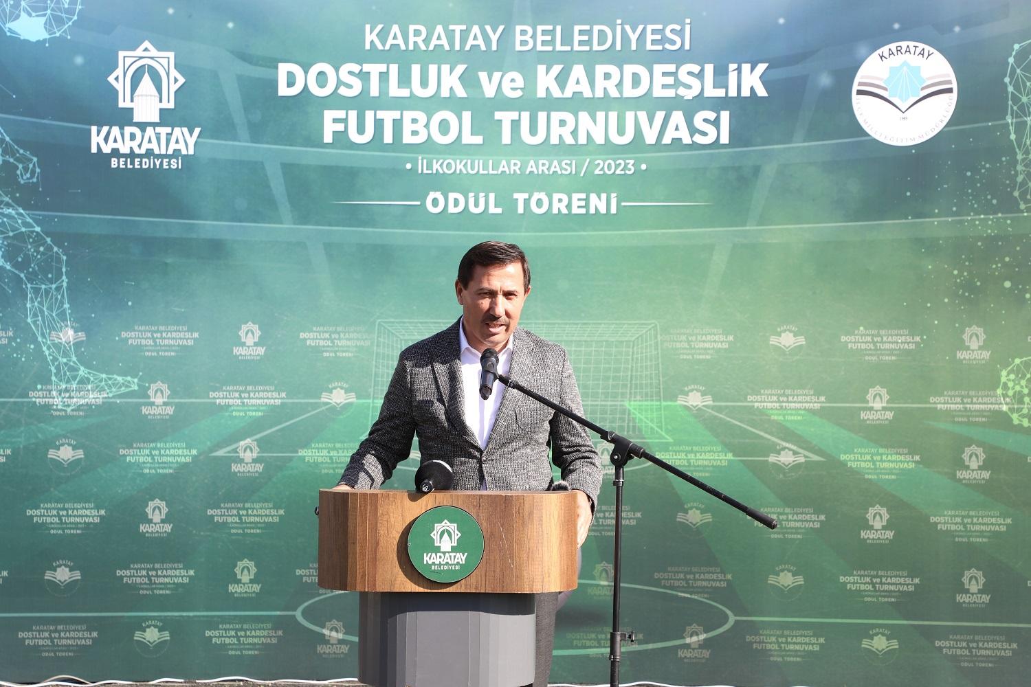 Konuşmaların ardından Karatay Belediye Başkanı Hasan Kılca, Karatay Kaymakamı Cengiz Ayhan, Konya İl Milli Eğitim Müdürü Murat Yiğit ve Karatay İlçe Milli Eğitim Müdürü Sami Sağdıç, “Karatay Belediyesi İlkokullar Arası Dostluk ve Kardeşlik Futbol Turnuvası”nda dereceye giren öğrencilere madalya, kupa ile hediyelerini verdi.