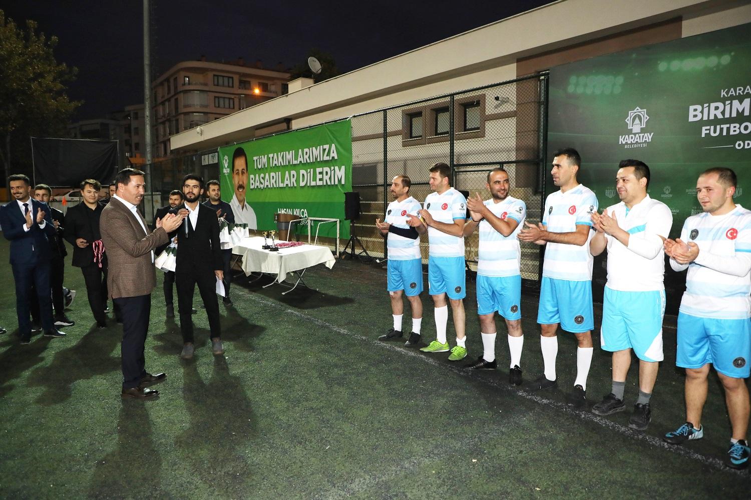Karatay Belediye Başkanı Hasan Kılca, “Karatay Belediyesi Birimler Arası Dostluk ve Kardeşlik Futbol Turnuvası”nın kupa töreninde yaptığı konuşmada organizasyonun dostluk havasında geçmesi dolayısıyla turnuvaya katılan tüm personele teşekkür etti.