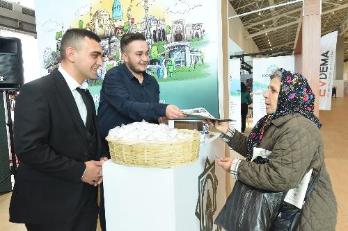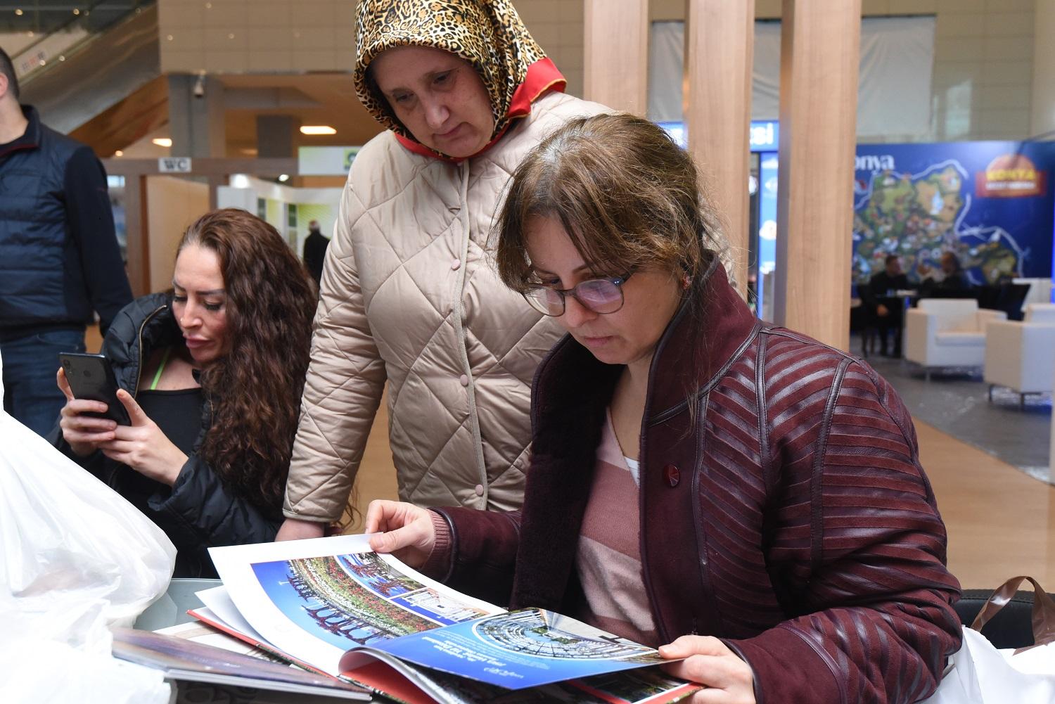 Karatay Belediyesi’nin standını gezen ziyaretçilere Konya ve Karatay’ı anlatan broşür ile kitapçıklar veriliyor. Stantta ayrıca misafirlere Karatay Lavanta Bahçesi’nin lavantalarından üretilen ürünler ikram ediliyor.