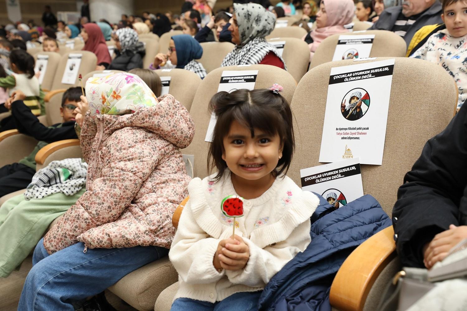 İşgalci İsrail güçleri tarafından evinden zorla çıkarılmaya çalışılan, bu uğurda büyük bir mücadele veren Kudüslü Meryem Ebu Najma’nın gerçek hayat hikâyesini konu alan “Filistin Hakkında Konuşmalıyız” tek kişilik tiyatro oyununun yetişkinler için olan sahnesi de büyük ilgi gördü.