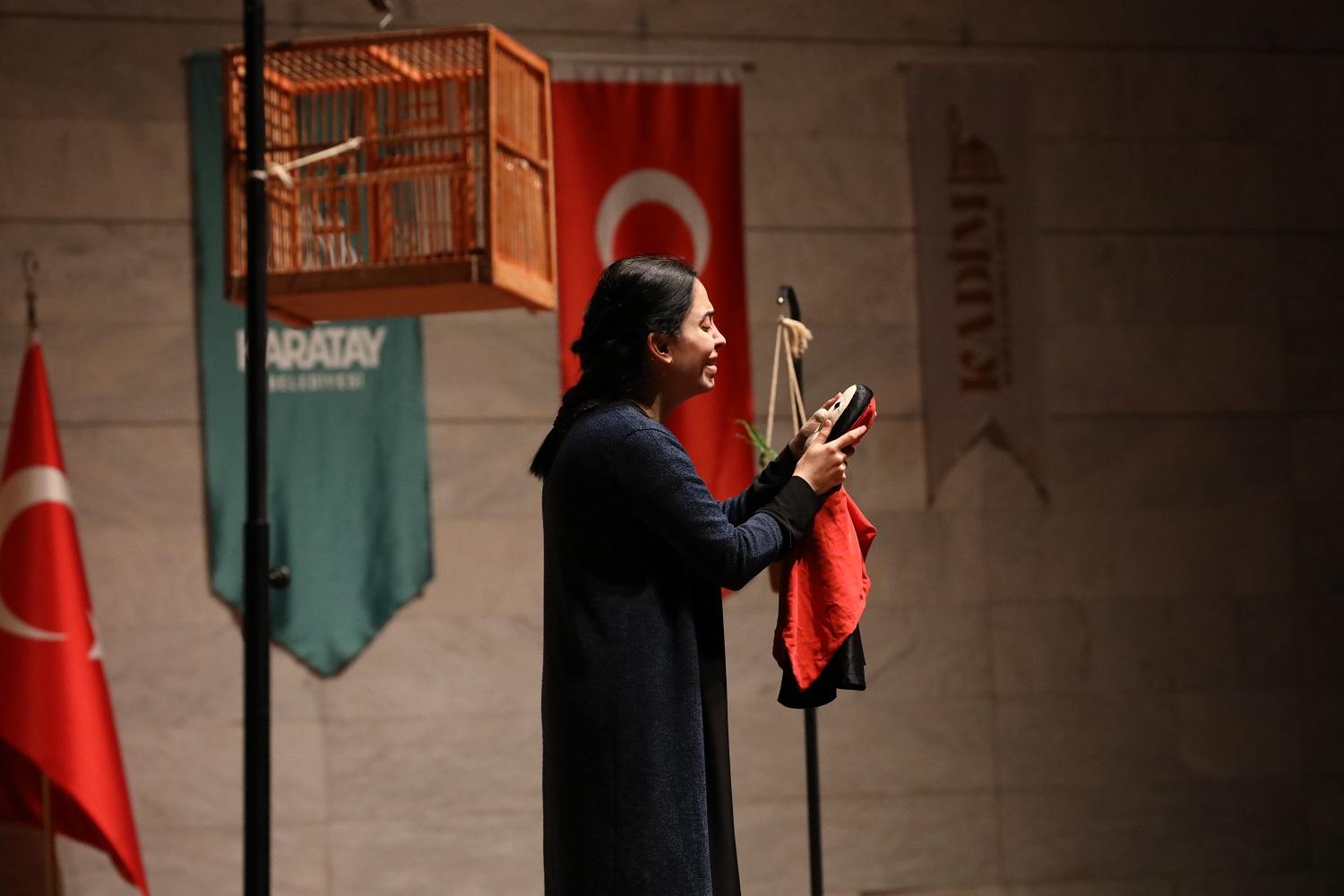 Mevlana Kültür Merkezi’ni dolduran Konyalılar, Oyuncu Nurdan Albamya’nın Filistinli Meryem’in hayatını sahneye taşıdığı oyunda; Filistin’de yaşanan ortak acıları, işlenen insanlık suçlarını ve Mescid-i Aksa’nın özgürlüğü için verilen mücadeleleri gözyaşları içinde izledi. Konyalı tiyatro severler, oyunun sonunda Oyuncu Nurdan Albamya’yı ayakta alkışladı.