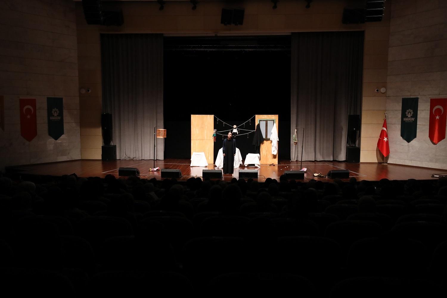 Oyunu izlemek isteyen çocuklar, Karatay Belediyesi’nin “Yanıbaşımda Karatay” mobil uygulaması üzerinden ücretsiz biletini alarak oyunun sahnelendiği Mevlana Kültür Merkezi Sultan Veled Salonu’nu doldurdu.