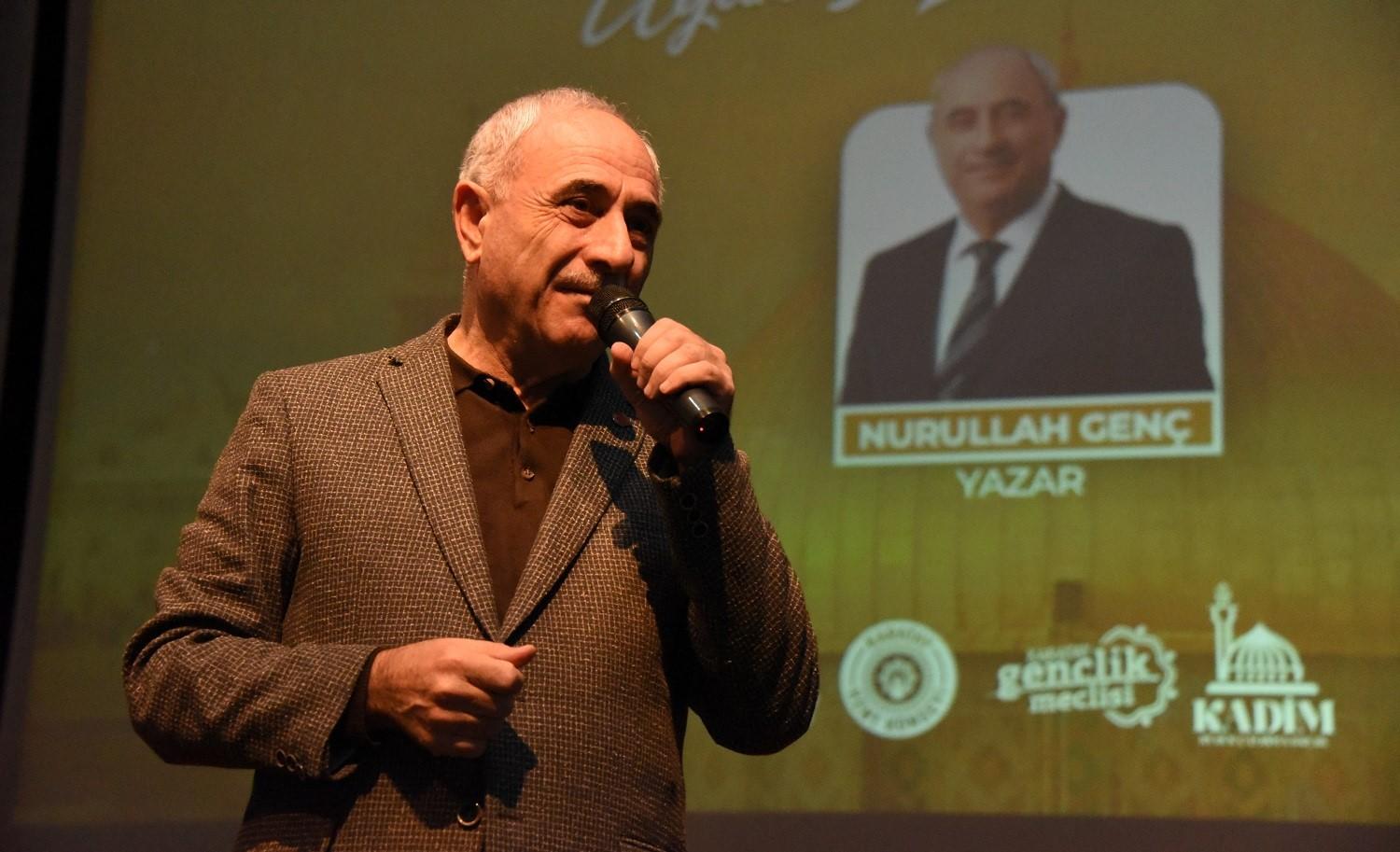 Programın düzenlenmesinde destekleri olan Karatay Belediye Başkanı Hasan Kılca ile Karatay Kent Konseyi Kadim Kudüs Çalışma Grubu’na teşekkür eden Şair ve Yazar Nurullah Genç, Konya’nın kendisi için farklı bir şehir olduğunu ifade etti.