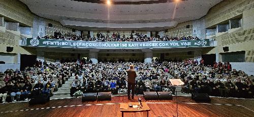 Mevlana Kültür Merkezi Sultan Veled Salonu’nda düzenlenen konferansta Nurullah Genç, İsrail’in 7 Ekim’den bu yana saldırılarını sürdürdüğü Gazze Şeridi’nde yaşananları, uluslararası toplumun konuya dair tepkisizliğinin yanı sıra dünya üzerinde zulüm gören Müslümanları ele aldı.