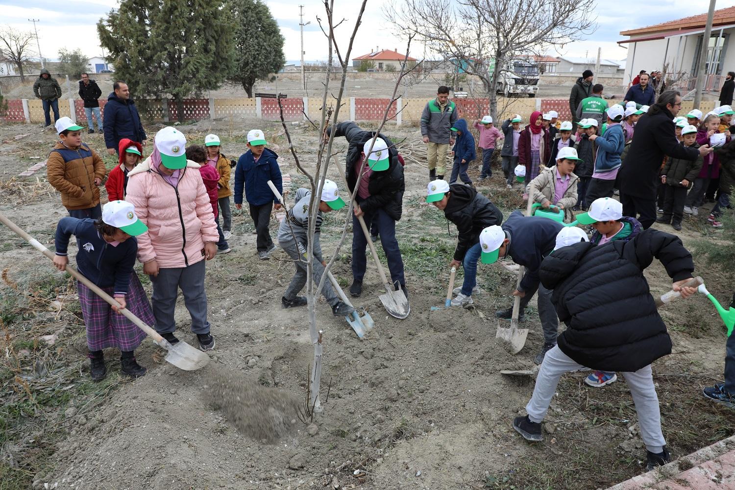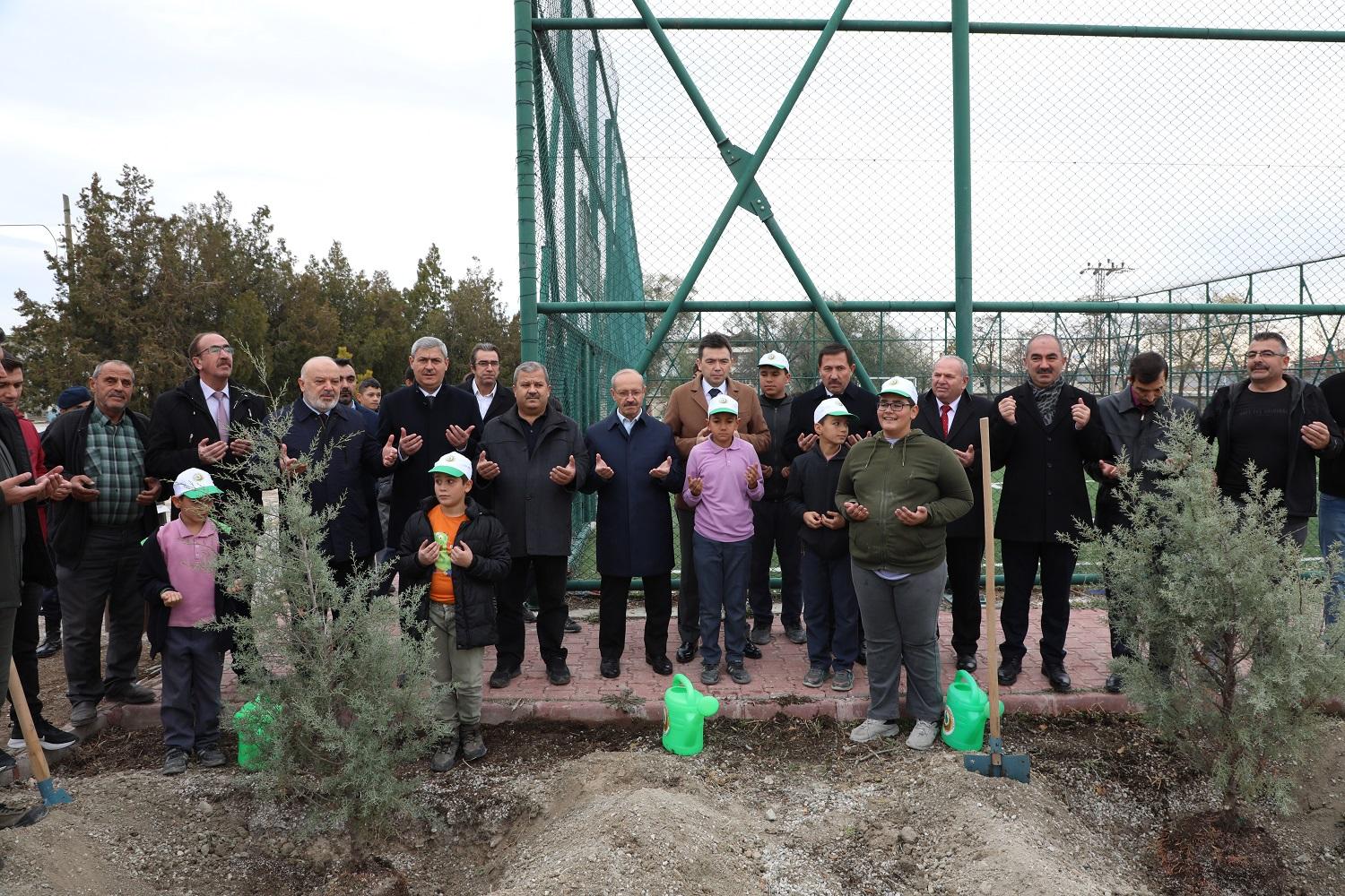 Fidan dikimi öncesinde bir süre öğrenci ve öğretmenlerle sohbet eden, öğrencilere fidan dikmenin öneminden bahseden Karatay Belediye Başkanı Hasan Kılca ve protokol üyeleri daha sonra Orman Bölge Müdürlüğü tarafından hazırlanan fidanları öğrencilerle birlikte toprakla buluşturdu.