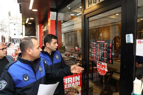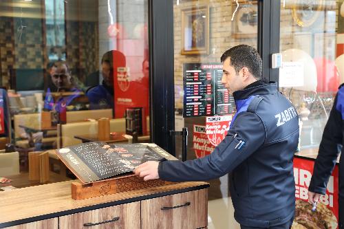 Ekipler; düzenlemeye ilişkin belgelerin lokanta, restoran, kafe, pastane ve benzeri yiyecek, içecek hizmeti sunulan iş yerlerinde giriş kapısının önüne ve hizmet sunulan masaların üstüne, tüketiciler tarafından kolaylıkla görülebilir ve okunabilir şekilde konulması konusunda işletme sahiplerini bir kez daha bilgilendirdi.