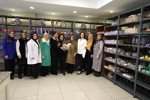 Konya Protokolünün eşleri de, “Atölye Karatay”ı ziyaret ederek yürütülen çalışmaları yerinde incelediler.