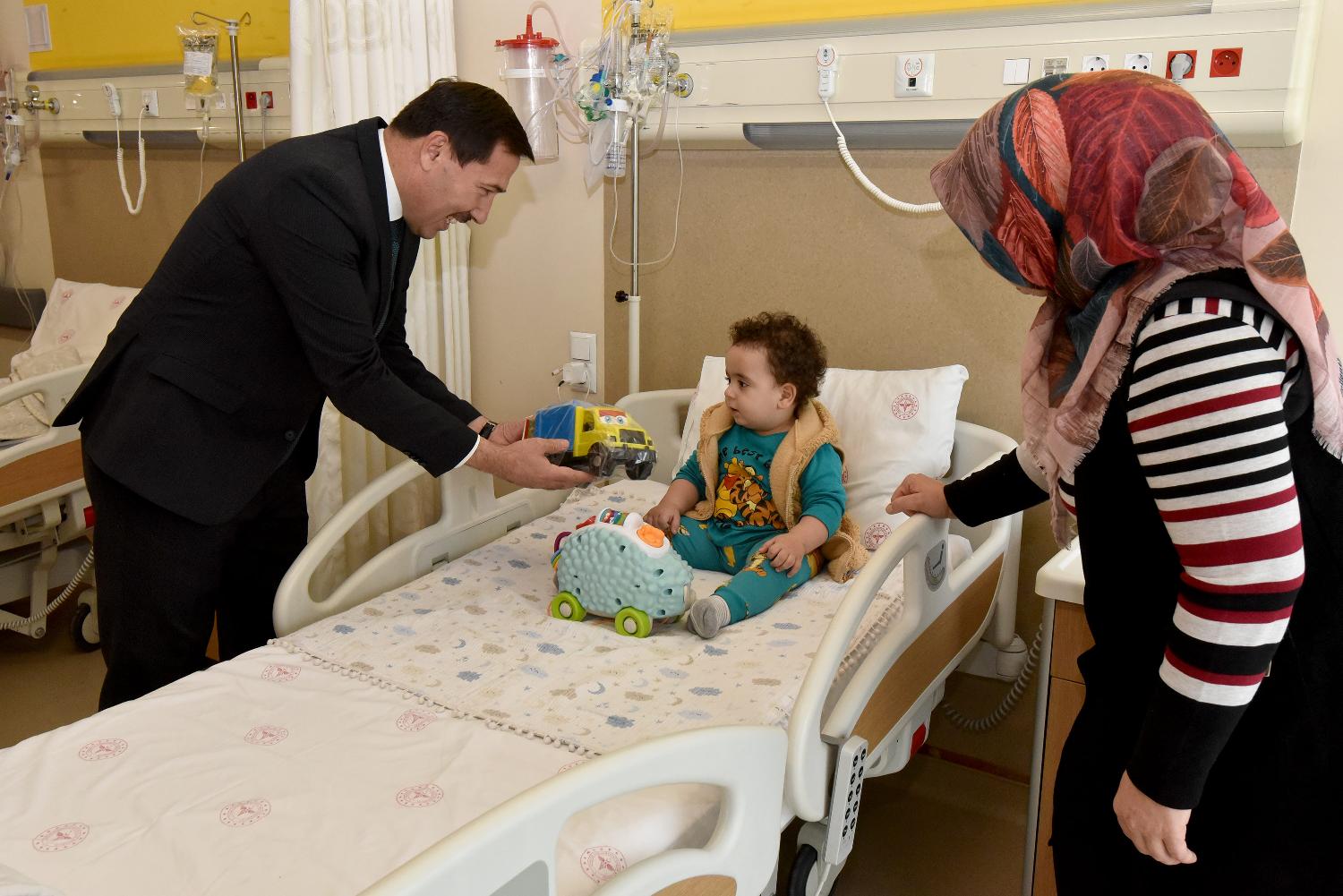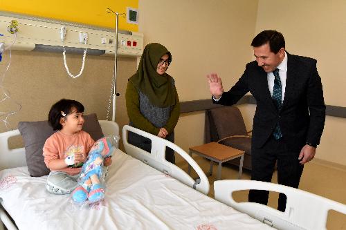 Başkan Hasan Kılca, Konya Şehir Hastanesi’nde tedavi gören çocukları da unutmadı. Şivlilik gününü hastanenin Çocuk Servisi’nde geçirmek zorunda kalan çocukları ve ailelerini odalarında ziyaret eden Hasan Kılca, kendilerine geçmiş olsun dileklerini iletti ve hediyelerini takdim etti.
