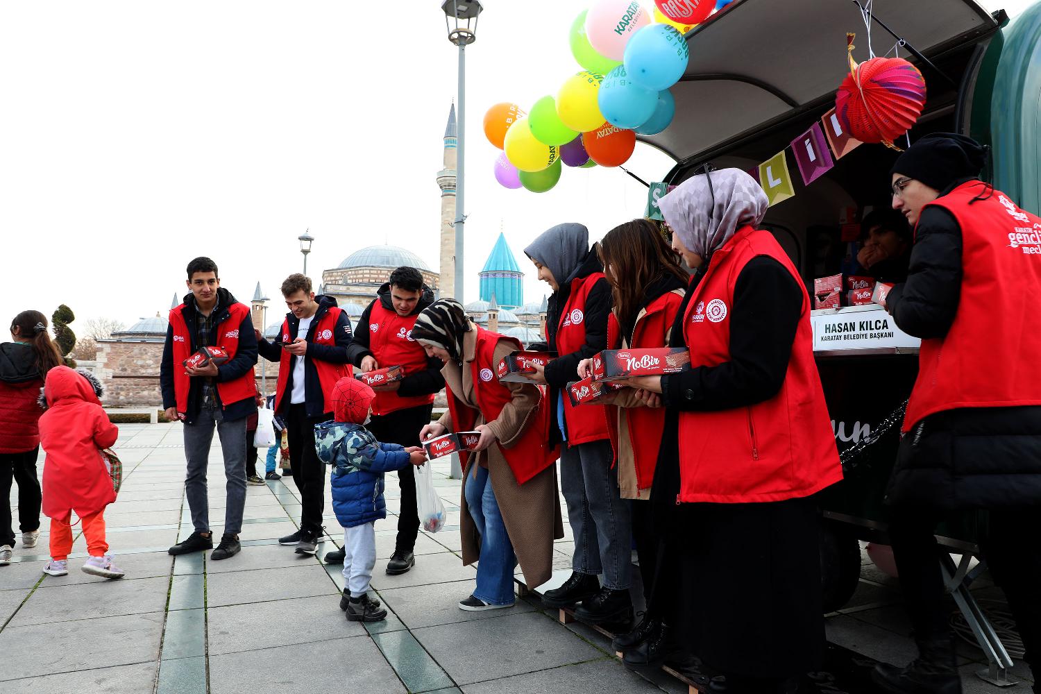 Karatay Belediyesi, sabahın erken saatlerinden itibaren belediye hizmet binasının önünde, Mevlana Meydanı’nda, Ali Ulvi Kurucu Karatay Gençlik Merkezi önünde çocuklara Şivlilik ikram ederek onların sevinçlerine ortak oldu.