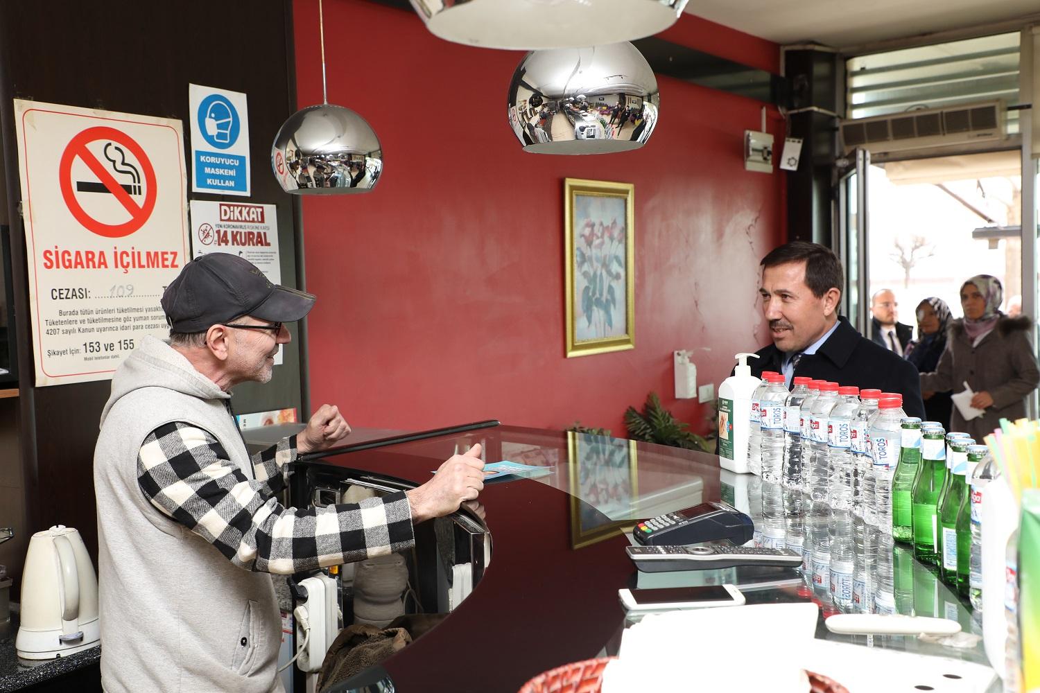 Mahalle sakinleriyle bir araya gelerek kendilerinden destek isteyen Hasan Kılca ile Mehmet Genç, Konya Adliyesi civarındaki Adalet ve Bey Plaza ile çevresindeki esnafları ziyaret ettiler.