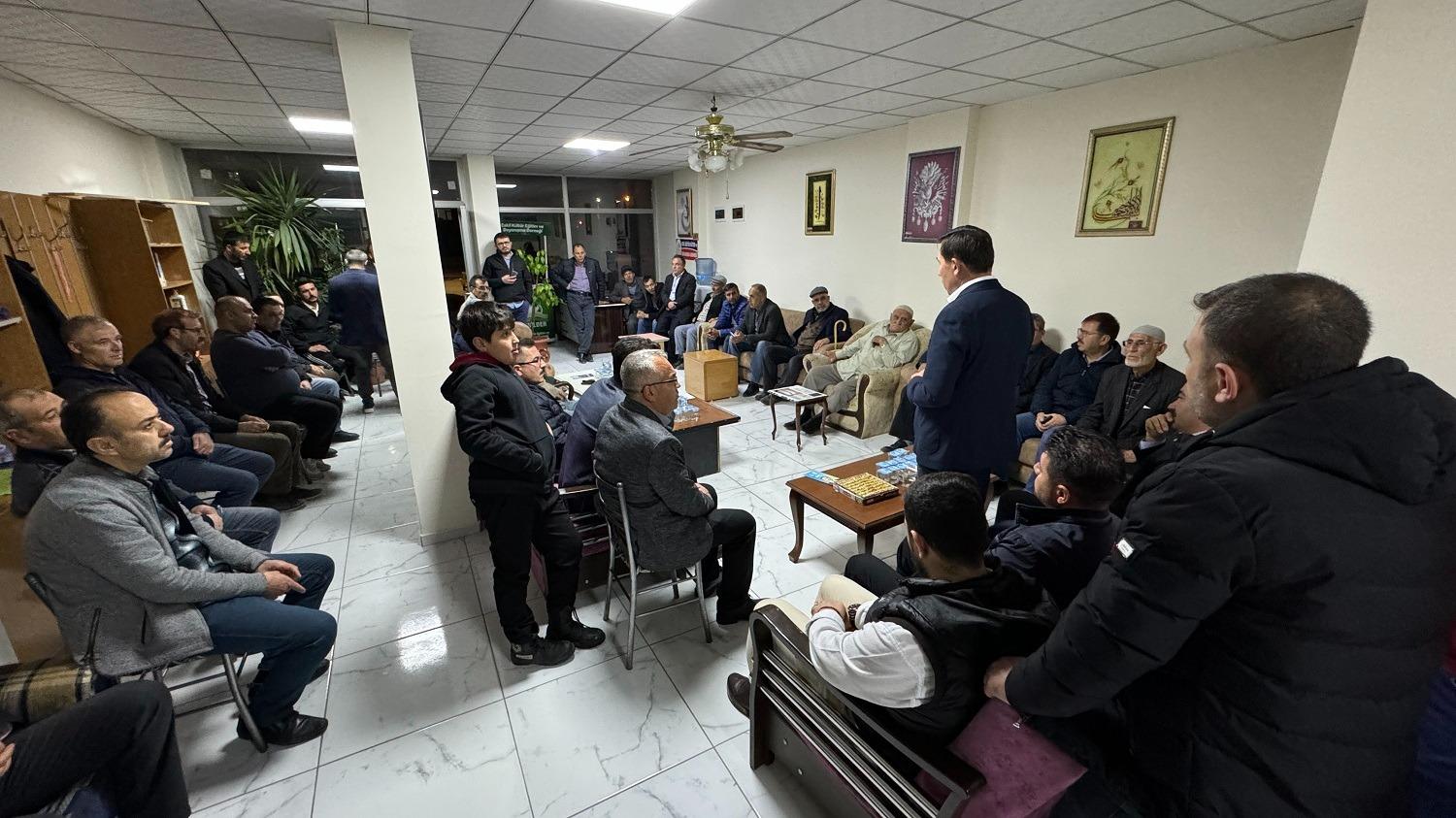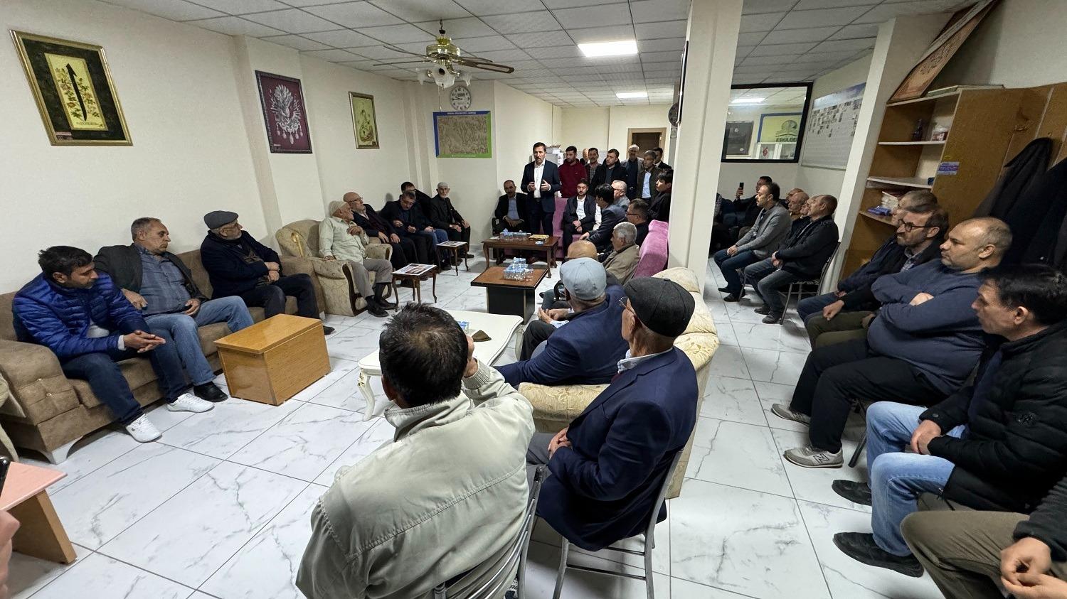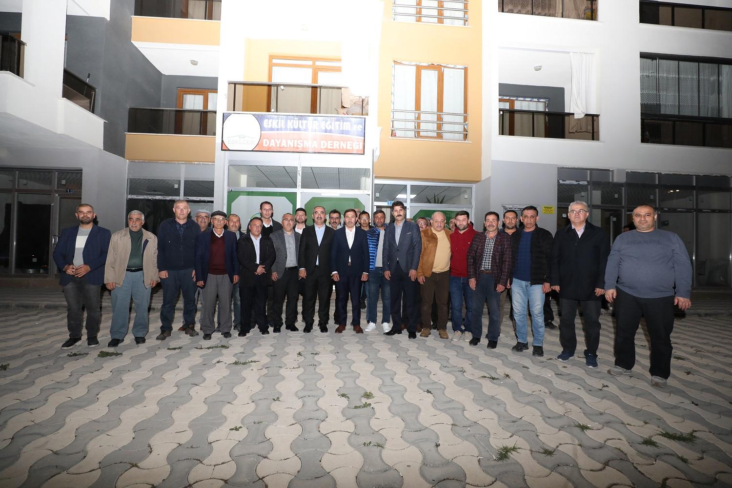 Bu kapsamda Başkan Hasan Kılca; AK Parti Karatay İlçe Başkanı Mehmet Genç, ilçe teşkilatı mensupları, belediye başkan yardımcıları, birim müdürleri, belediye meclisi üyeleri ve meclis üyesi adaylarıyla birlikte; Konya’da yaşayan Aksaraylılar tarafından kurulan Eskil Kültür, Eğitim ve Dayanışma Derneği’ni ziyaret etti.
