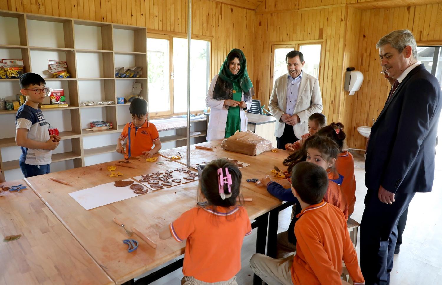 Projede verilen eğitimler hakkında bilgi alan ve oldukça renkli görüntü ve diyalogların yaşandığı ziyarette Başkan Hasan Kılca, oluşturulan seraya sebze tohumu ekti, seramik, yemek ve temel yaşam becerileri atölyelerinde de birçok etkinliği öğrencilerle birlikte gerçekleştirdi.