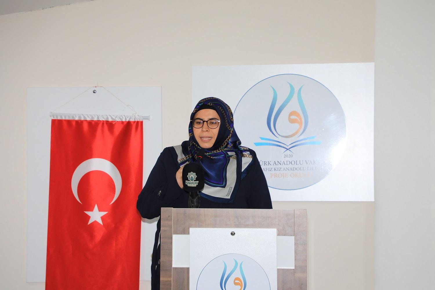 Türk Anadolu Vakfı Hafız Kız Anadolu İmam Hatip Lisesi’nde hafızlık eğitimine yeni başlayacak öğrenciler için anlamlı bir program düzenlendi. “Hafızlığa Başlıyorum” temasıyla gerçekleştirilen programa; Karatay Belediye Başkanı Hasan Kılca, İl Müftüsü Prof. Dr. Ali Öge, Karatay İlçe Millî Eğitim Müdürü Turan Kayacılar, Karatay İlçe Müftüsü Halil Taş, Türk Anadolu Vakfı Başkanı Erol Küçükbakırcı, Karatay Milli Eğitim Şube Müdürü Mevlüt Ergan ile öğrenciler, veliler, öğretmenler ve davetliler katıldı.