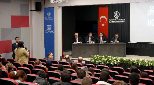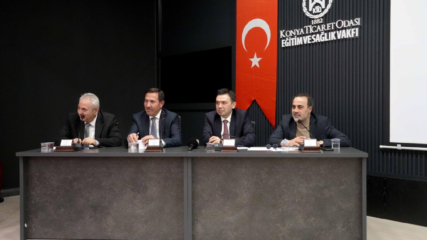 Karatay Kaymakamı Cengiz Ayhan ve Karatay Belediye Başkanı Hasan Kılca, Konya Ticaret Odası Eğitim ve Sağlık Vakfı’nın düzenlediği deneyim paylaşımı programı kapsamında KTO Karatay Üniversitesi öğrencileriyle bir araya geldi. Programa; KTO Karatay Üniversitesi Mütevelli Heyeti Başkanı ve Konya Ticaret Odası Başkanı Selçuk Öztürk ile KTO Karatay Üniversitesi Rektörü Prof. Dr. Fevzi Rifat Ortaç da katıldı.