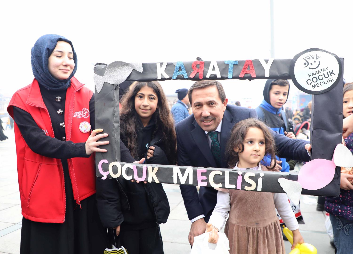 Karatay Belediyesi tarafından sabahın erken saatlerinden itibaren belediye hizmet binası önü ve Mevlana Meydanı başta olmak üzere ilçenin farklı noktalarında etkinlikler gerçekleştirildi. Mevlana Meydanı’nda kurulan sahnede meddah, jonglör, tahta bacak ve illüzyon gösterileri ile çeşitli yarışmalar düzenlenirken; kurulan çadırlarda rozet, ayraç, Filistin temalı bileklik, yüz boyama ve sosis balon atölyeleri çocuklarla buluştu.