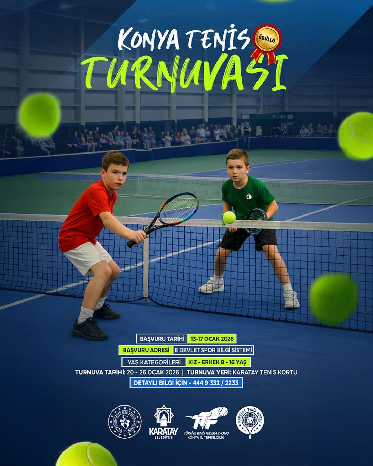 Karatay Belediyesi’nin ev sahipliğinde düzenlenecek Konya Tenis Turnuvası, 20-26 Ocak 2026 tarihleri arasında 8-16 yaş arası sporcuların katılımıyla gerçekleştirilecek.