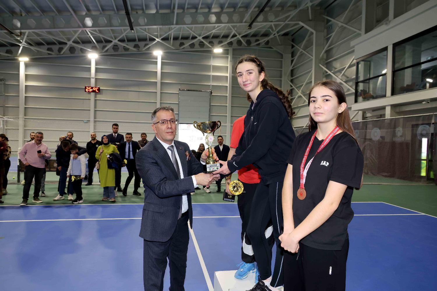 Final maçlarının ardından gerçekleştirilen ödül törenine; Karatay Belediye Başkanı Hasan Kılca, AK Parti Karatay İlçe Başkanı Akif Demirci, Konya Gençlik ve Spor İl Müdürü Muzaffer Çintimar, Konya Tenis İl Temsilcisi Ümit Dışpınar, Konya Gençlik ve Spor İl Müdür Yardımcısı Bilal Yavaş, Karatay Gençlik ve Spor İlçe Müdürü Ömer Özçelik, Karatay Belediyespor Kulübü Başkanı Muhittin Şener, sporcular ve aileleri katıldı.