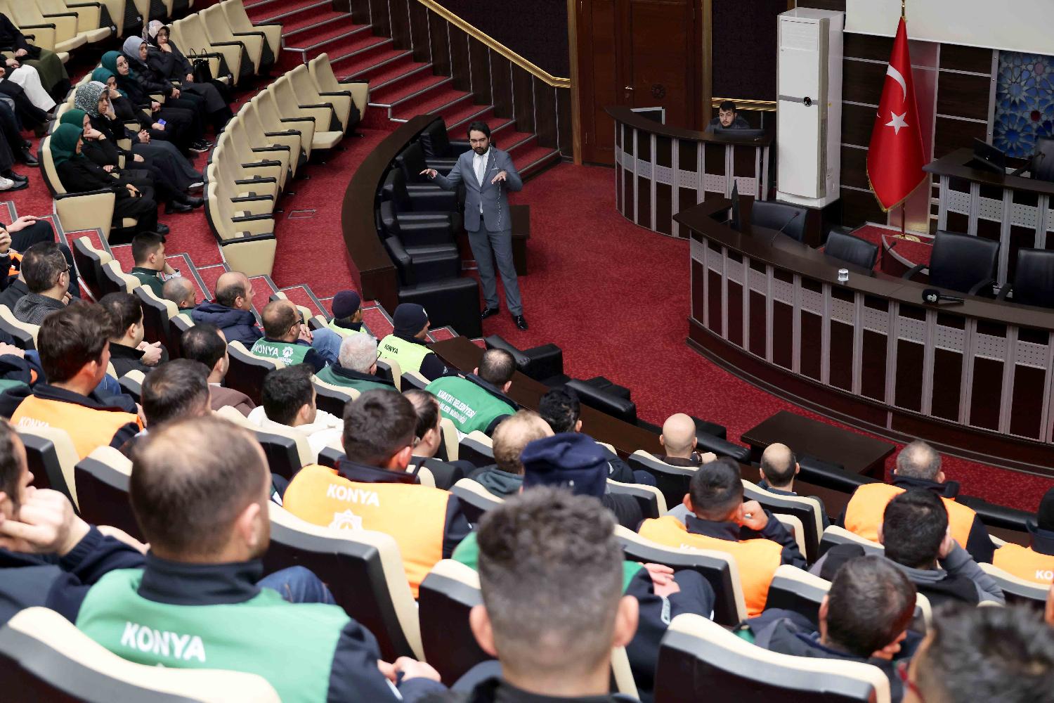 Karatay Belediyesi personelinin yoğun ilgi gösterdiği eğitim, soru-cevap bölümünün ardından sona erdi.