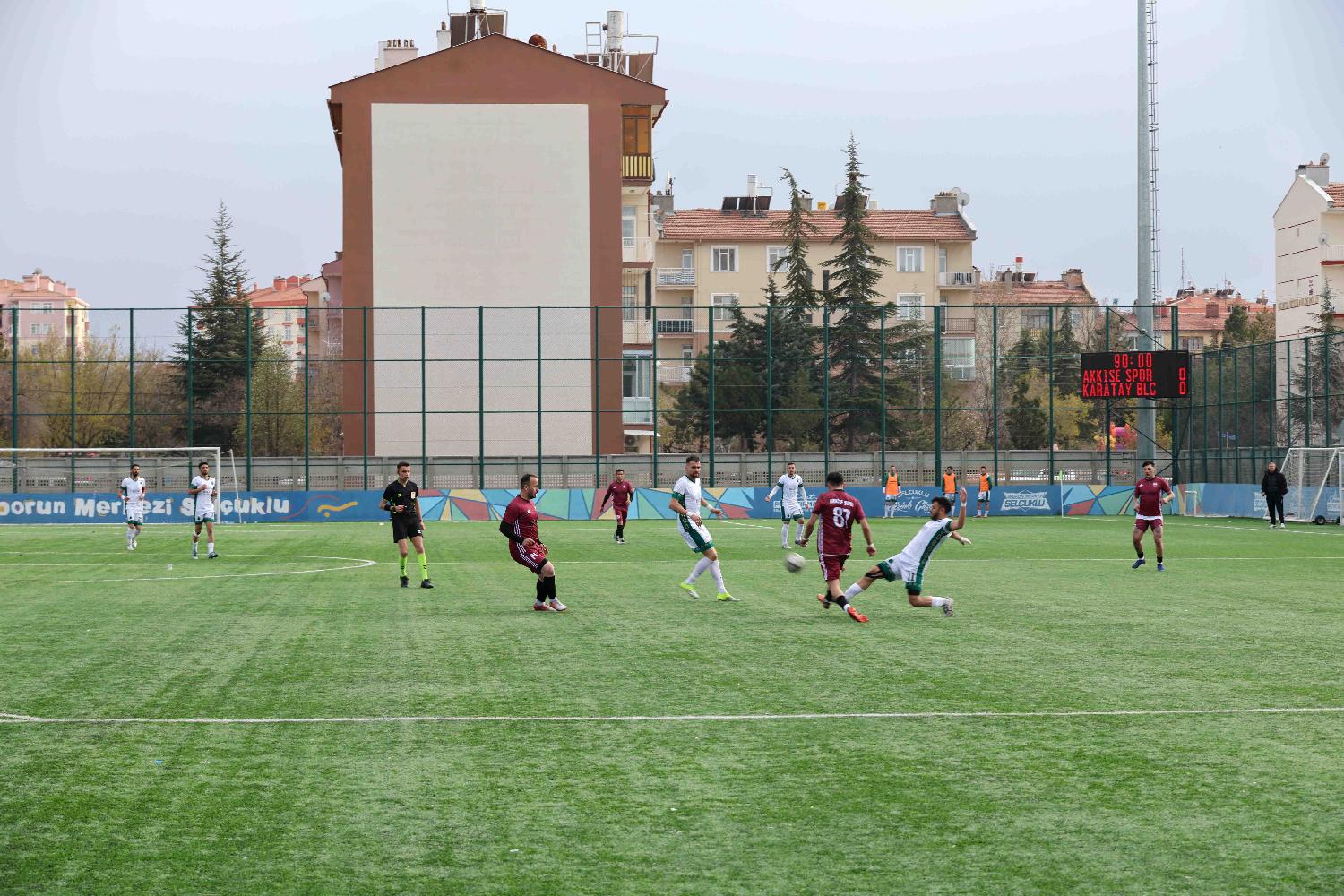 Karatay Belediyespor Kulübü Futbol A Takımı, mücadele ettiği 1. Amatör Küme Play-Off grubunun son maçında Akkisespor ile golsüz berabere kalarak sezonu şampiyon olarak tamamladı. Yeşil-siyahlılar, bu sonuçla beraber namağlup olarak Süper Amatör Küme’ye yükseldi.